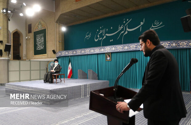 Simultaneously with the holding of the 12th National Elite Foundation Conference in Tehran, some of the Iranian leading elites and scientific talents met with the Islamic Revolution Leader Ayatollah Seyyed Ali Khamenei at Husseiniyah of Imam Khomeini (RA) on Wednesday morning.