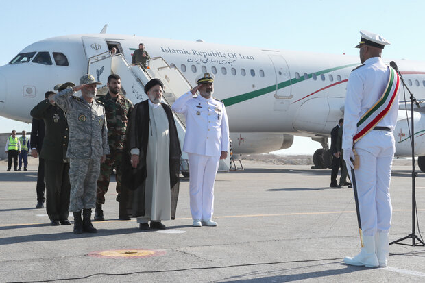 Raeisi, who has traveled to Bandar-e-Jask on Sunday morning to participate in the naval parade of the Islamic Republic of Iran Army on the occasion of the Army Navy Day, was welcomed by the Governor-General of Hormozgan, Army Commander Major General Abdolrahim Mousavi, the Commander of Iran’s Army Navy Force Rear Admiral Shahram Irani and a group of local officials.