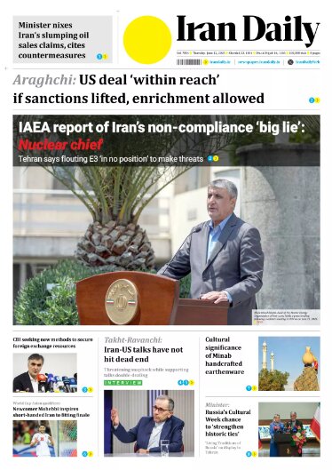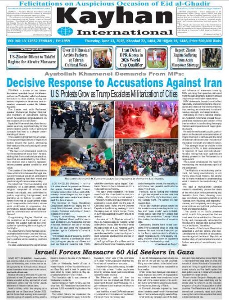 Politics 12 June 2025 - 08:49 Download photos Front pages of Iran's English dailies on June 12 TEHRAN, Jun. 12 (MNA) – Here are the front pages of Iran's English language dailies on Thursday, June 12. Tags Iran Iran International Dailies Iranian Newspapers Related News Front pages of Iran's English dailies on June 11 Front pages of Iran's English dailies on June 10 Front pages of Iran's English dailies on June 29 Front pages of Iran's English dailies on June 9 Front pages of Iran's English dailies on June 30