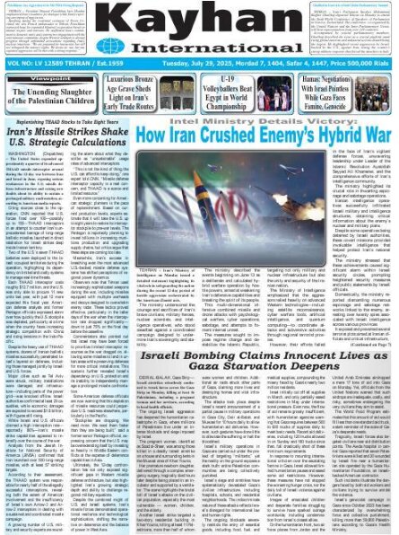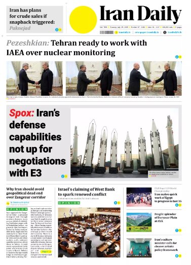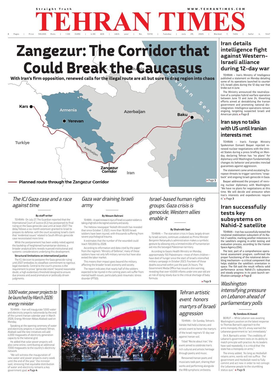 TEHRAN, Jul. 29 (MNA) – Here are the front pages of Iran's English language dailies on Tuesday, July 29.