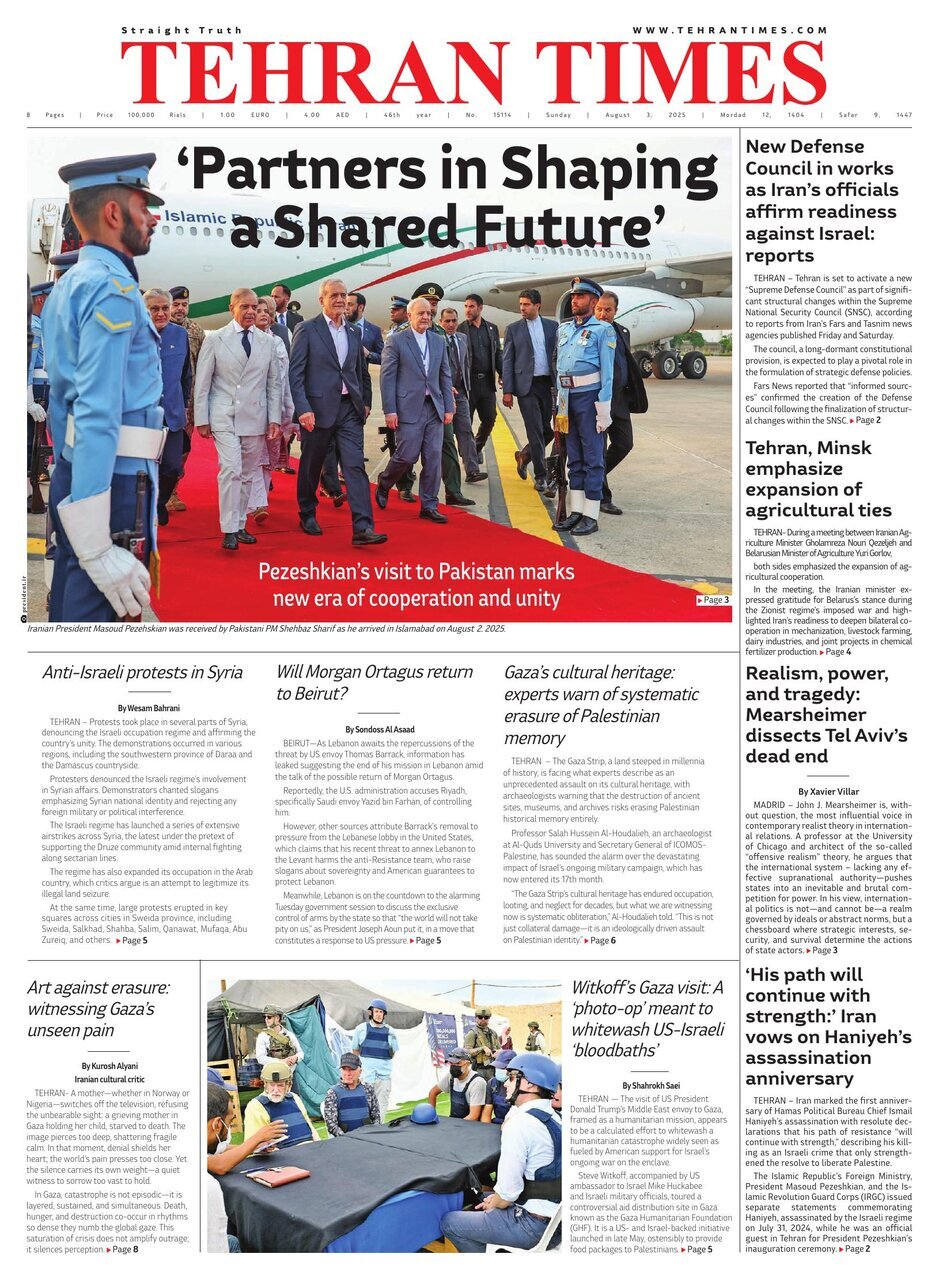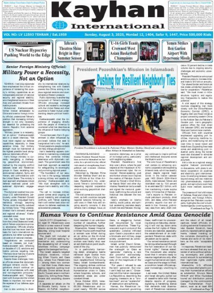 TEHRAN, Aug. 03 (MNA) – Here are the front pages of Iran’s English language dailies on Sunday, August 3.