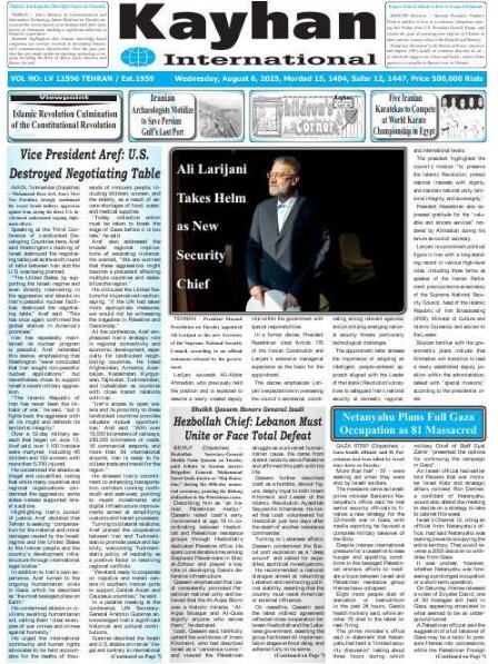 Politics 6 August 2025 - 08:58 Download photos Front pages of Iran’s English dailies on August 6 TEHRAN, Aug. 06 (MNA) – Here are the front pages of Iran’s English language dailies on Wednesday, August 6. Tags Iran Iran International Dailies Iranian Newspapers Related News Front pages of Iran’s English dailies on August 5 Front pages of Iran’s English dailies on August 9 Front pages of Iran’s English dailies on August 4 Front pages of Iran’s English dailies on August 10 Front pages of Iran’s English dailies on August 3