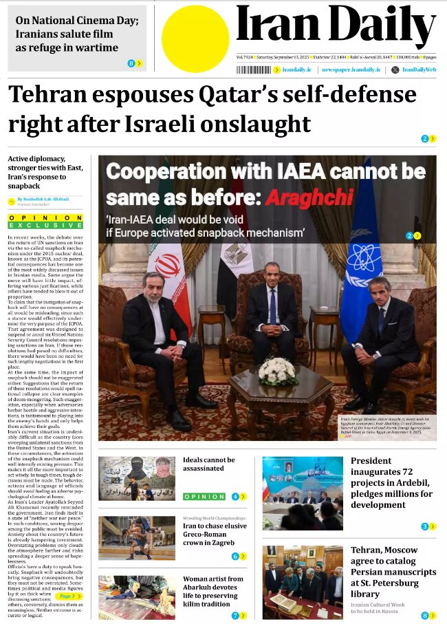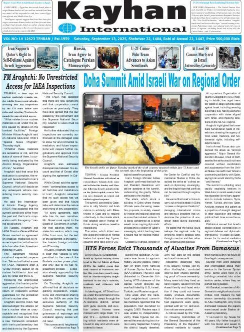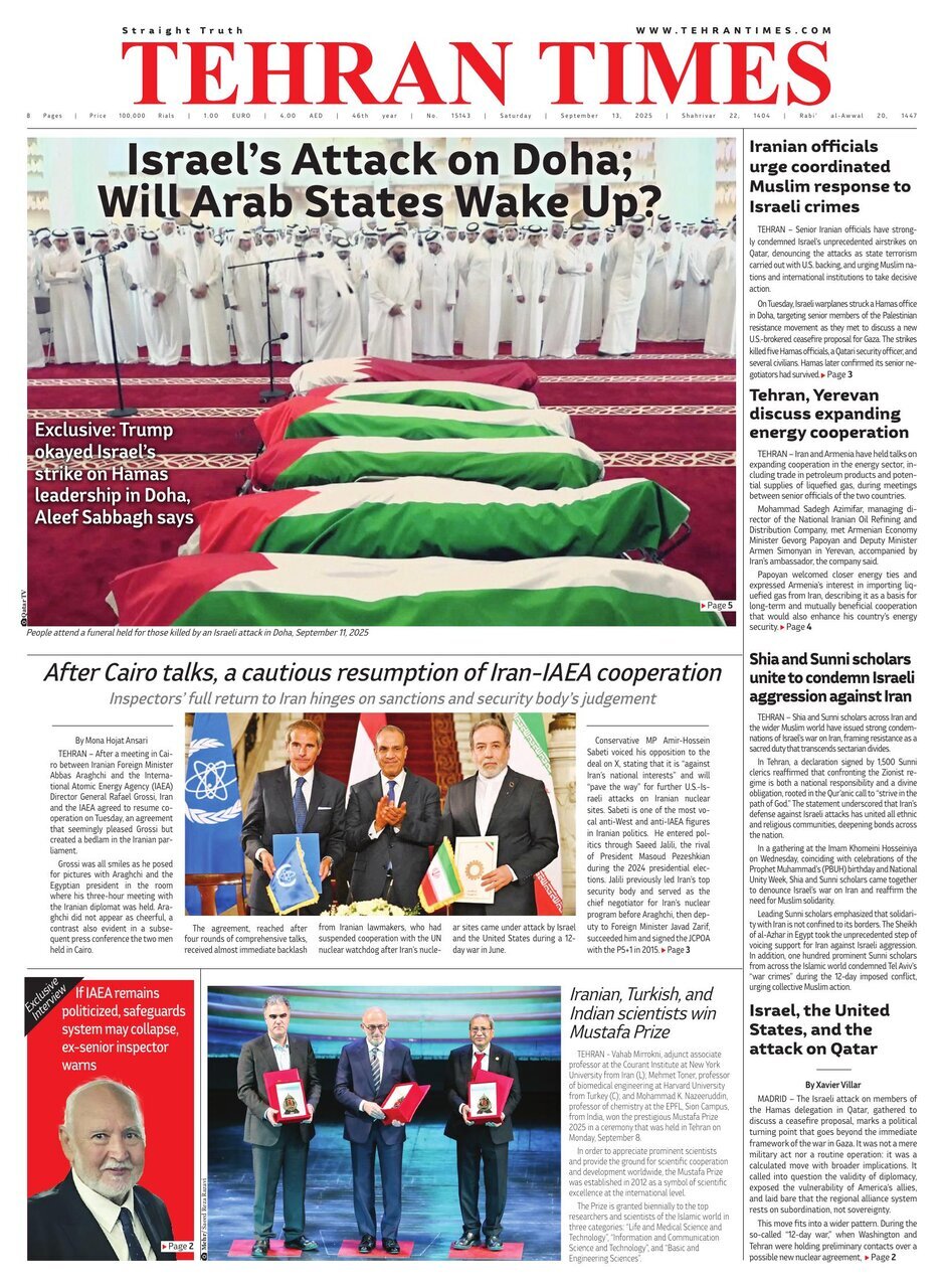 TEHRAN, Sep. 13 (MNA) – Here are the front pages of Iran's English language dailies on Saturday, September 13.