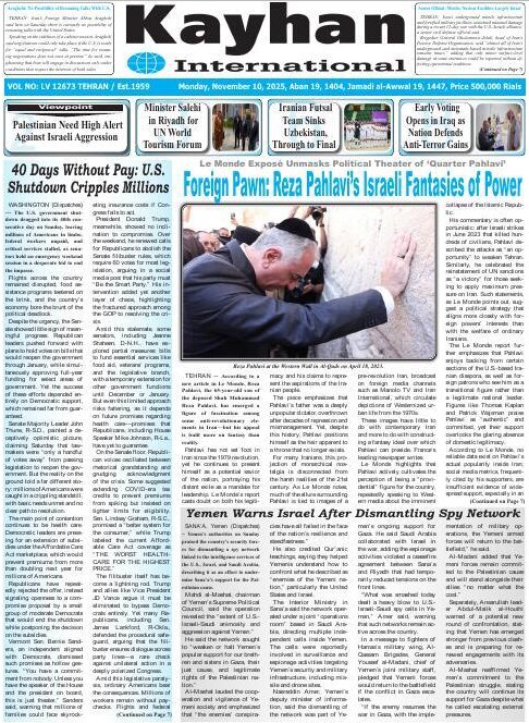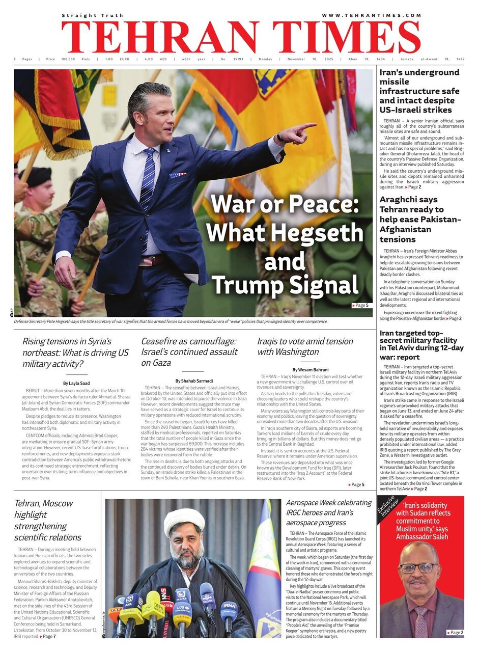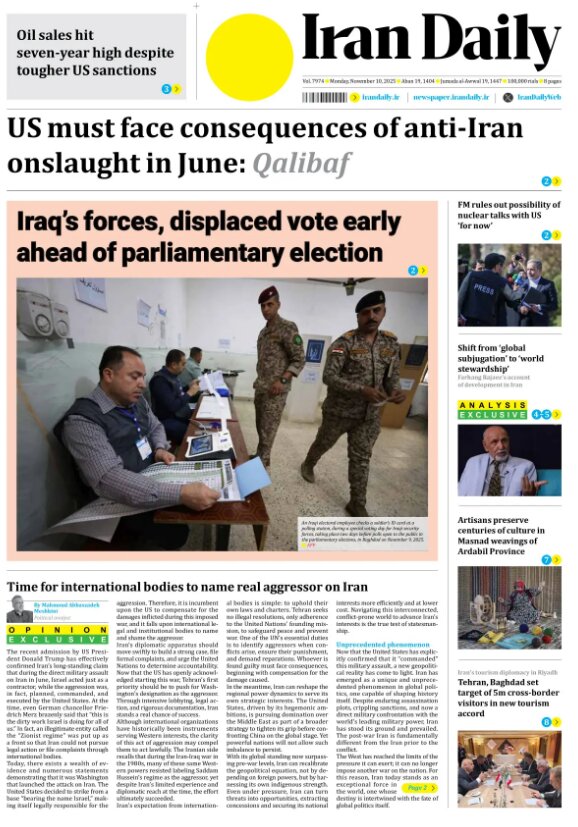 TEHRAN, Nov. 10 (MNA) – Here are the front pages of Iran's English language dailies on Monday, November 10.