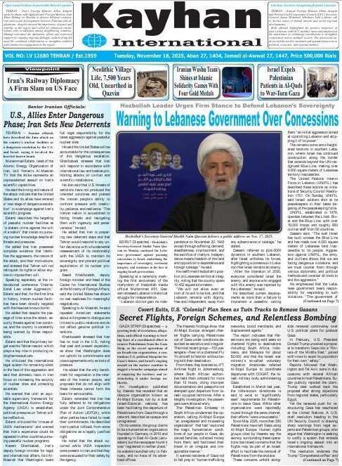 Politics 18 November 2025 - 06:56 Download photos Front pages of Iran's English dailies on November 18 TEHRAN, Nov. 18 (MNA) – Here are the front pages of Iran's English language dailies on Tuesday, November 18. Tags Iran Iran International Dailies Iranian Newspapers Related News Front pages of Iran's English dailies on November 17 Front pages of Iran's English dailies on November 19 Front pages of Iran's English dailies on November 16 Front pages of Iran's English dailies on November 15 Front pages of Iran’s English dailies on November 22 Front pages of Iran’s English dailies on November 20