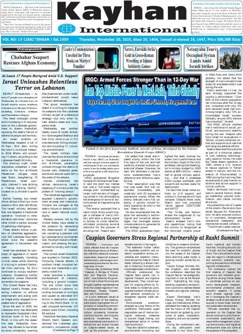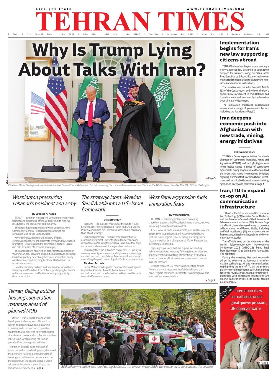 TEHRAN, Nov. 20 (MNA) – Here are the front pages of Iran's English language dailies on Thursday, November 20.