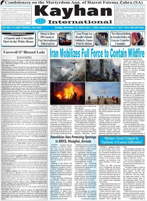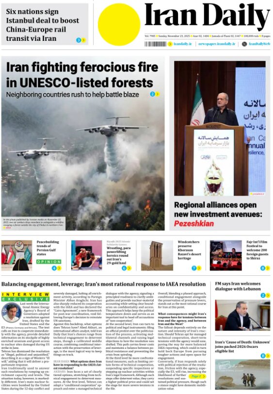 Politics 23 November 2025 - 06:57 Download photos Front pages of Iran’s English dailies on November 23 TEHRAN, Nov. 23 (MNA) – Here are the front pages of Iran's English language dailies on Sunday, November 23. Tags Iran Iran International Dailies Iranian Newspapers Related News Front pages of Iran’s English dailies on November 22 Front pages of Iran’s English dailies on November 25 Front pages of Iran’s English dailies on November 20 Front pages of Iran’s English dailies on November 26 Front pages of Iran's English dailies on November 19