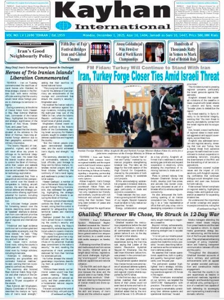 Politics 1 December 2025 - 07:08 Download photos Front pages of Iran's English dailies on December 1 TEHRAN, Dec. 01 (MNA) – Here are the front pages of Iran's English language dailies on Monday, December 1. Tags Iran Iran International Dailies Iranian Newspapers Iran news Iran news now Related News Front pages of Iran’s English dailies on November 30 Front pages of Iran's English dailies on December 2 Front pages of Iran’s English dailies on November 29 6th day of Fajr Intl Film Festival in Shiraz Front pages of Iran's English dailies on December 3 Front pages of Iran's English dailies on December 4