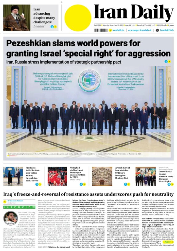Politics 13 December 2025 - 07:04 Download photos Front pages of Iran's English dailies on December 13 TEHRAN, Dec. 13 (MNA) – Here are the front pages of Iran's English language dailies on Saturday, December 13. Tags Iran Iran International Dailies Iranian Newspapers Related News Front pages of Iran's English dailies on December 11 Front pages of Iran's English dailies on December 14 Front pages of Iran's English dailies on December 15 Front pages of Iran's English dailies on December 10 Front pages of Iran's English dailies on December 9 Front pages of Iran's English dailies on December 16