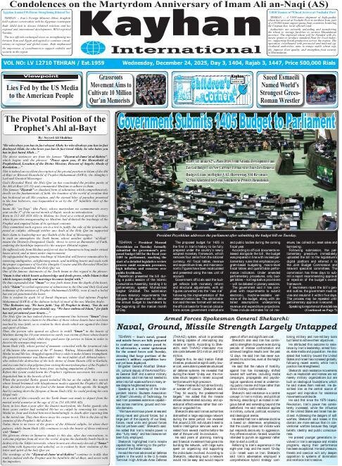 Politics 24 December 2025 - 06:54 Download photos Front pages of Iran’s English dailies on December 24 TEHRAN, Dec. 24 (MNA) – Here are the front pages of Iran's English language dailies on Wednesday, December 24. Tags Iran Iran International Dailies Iranian Newspapers Related News Front pages of Iran’s English dailies on December 23 Front pages of Iran’s English dailies on December 25 Front pages of Iran’s English dailies on December 22 Front pages of Iran’s English dailies on December 28 Front pages of Iran’s English dailies on December 21 Front pages of Iran’s English dailies on December 29