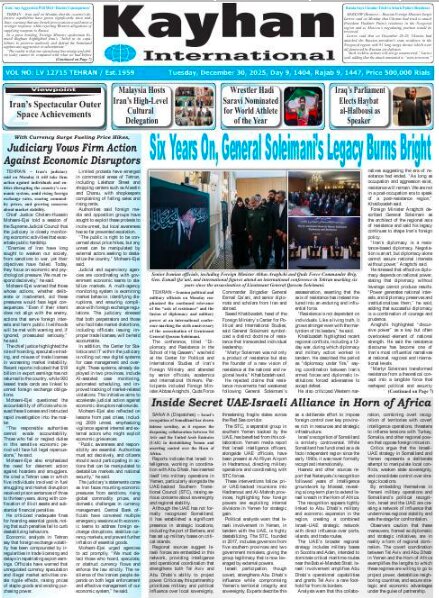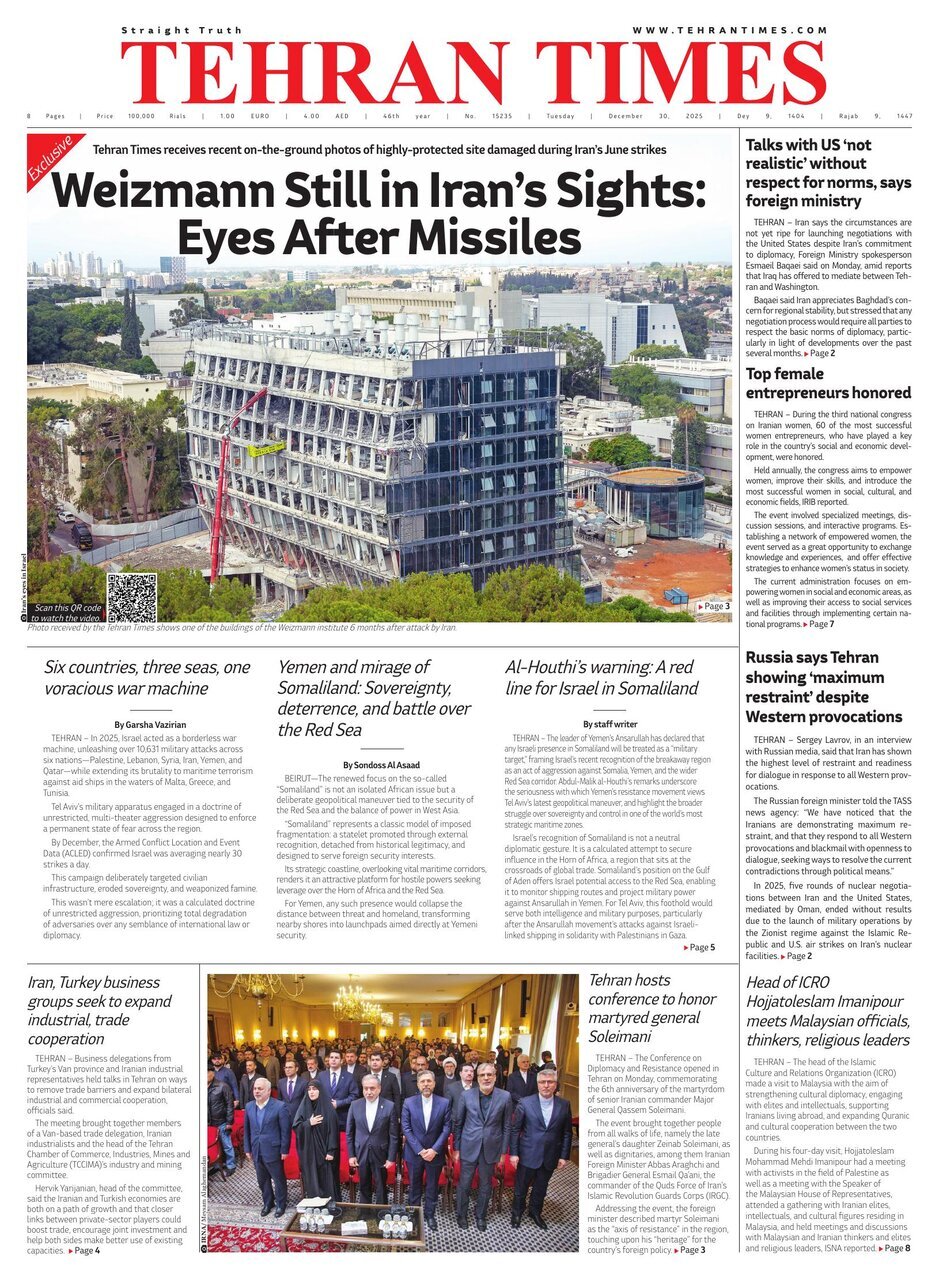 TEHRAN, Dec. 30 (MNA) – Here are the front pages of Iran's English language dailies on Tuesday, December 30.
