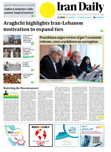Politics 8 January 2026 - 09:27 Download photos Front pages of Iran's English dailies on January 8 TEHRAN, Jan. 08 (MNA) – Here are the front pages of Iran's English language dailies on Thursday, January 08. Tags Iran Iran International Dailies Iranian Newspapers Related News Front pages of Iran's English dailies on January 11