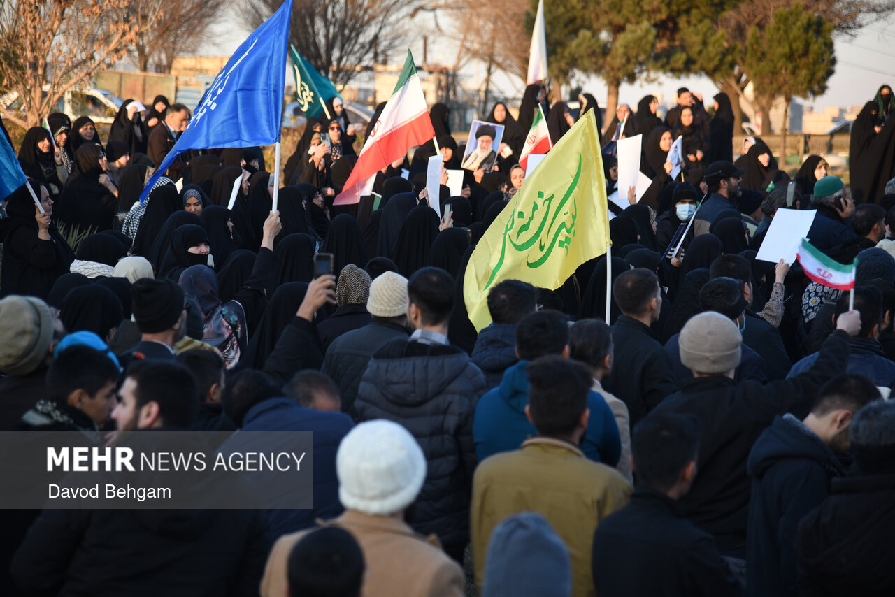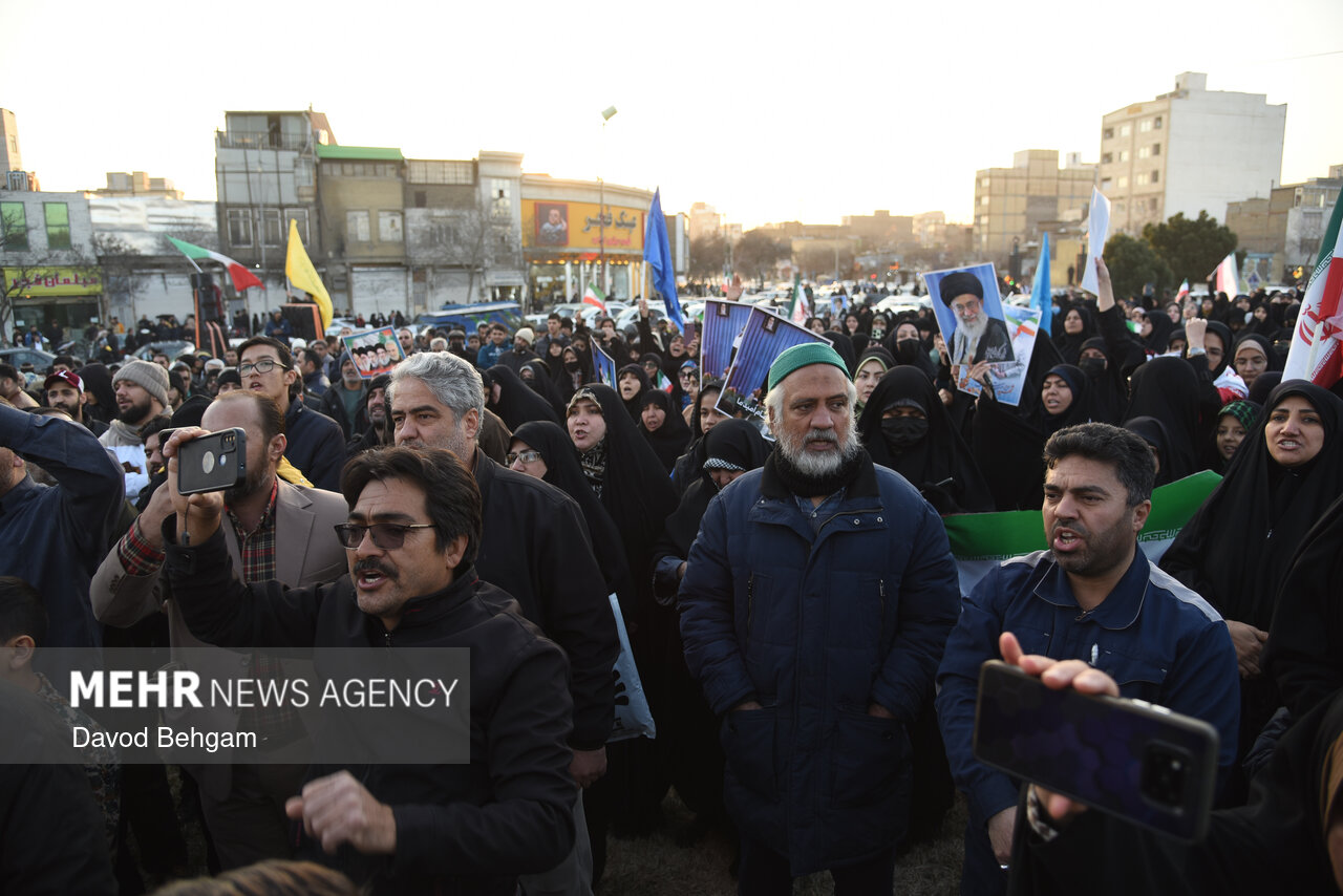 MASHHAD, Jan. 08 (MNA) – People in the holy city of Mashhad in northeastern Iran held a big march to denounce the recent insult to national Iranian flag and also holy Qoran during the recent foreign-insitigated riots.
