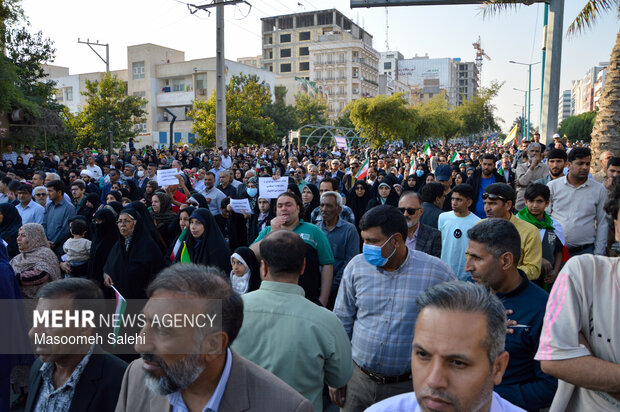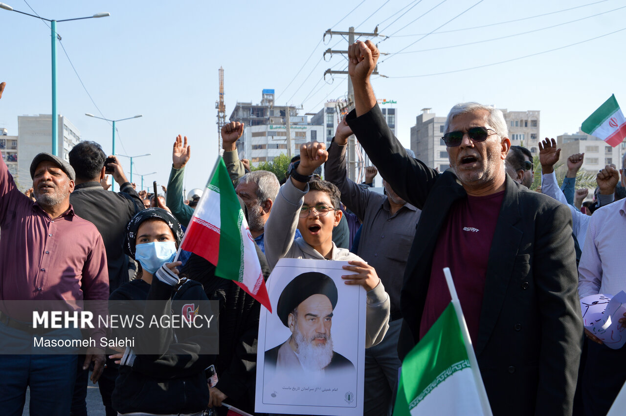 TEHRAN, Jan. 13 (MNA) – The people of Bandar Abbas took part in "National Solidarity" rallies on Monday to denounce foreign-backed riots and voice support for the Islamic Establishment.