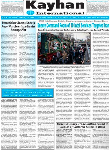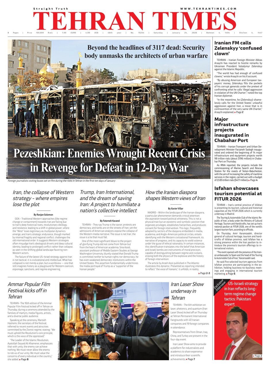 Politics 24 January 2026 - 08:52 Download photos Front pages of Iran’s English dailies on January 24 TEHRAN, Jan. 24 (MNA) – Here are the front pages of Iran's English language dailies on Saturday, January 24. Tags Iran Iran International Dailies Iranian Newspapers