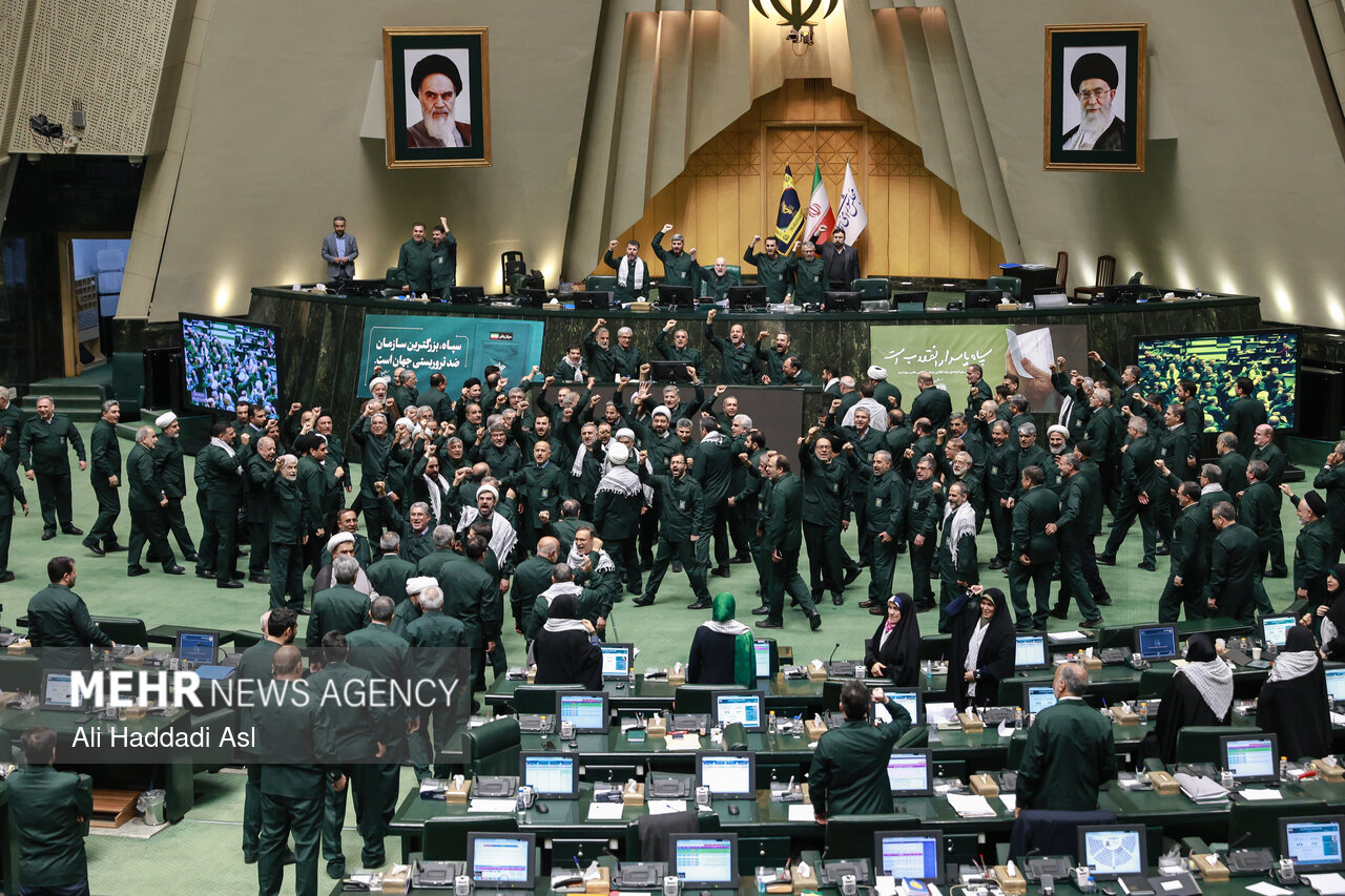 In the open session, lawmakers and members of the parliament wore the IRGC uniforms and voiced their unwavering support for the Islamic Revolutionary Guards Corps (IRGC) and condemned the EU's latest move.