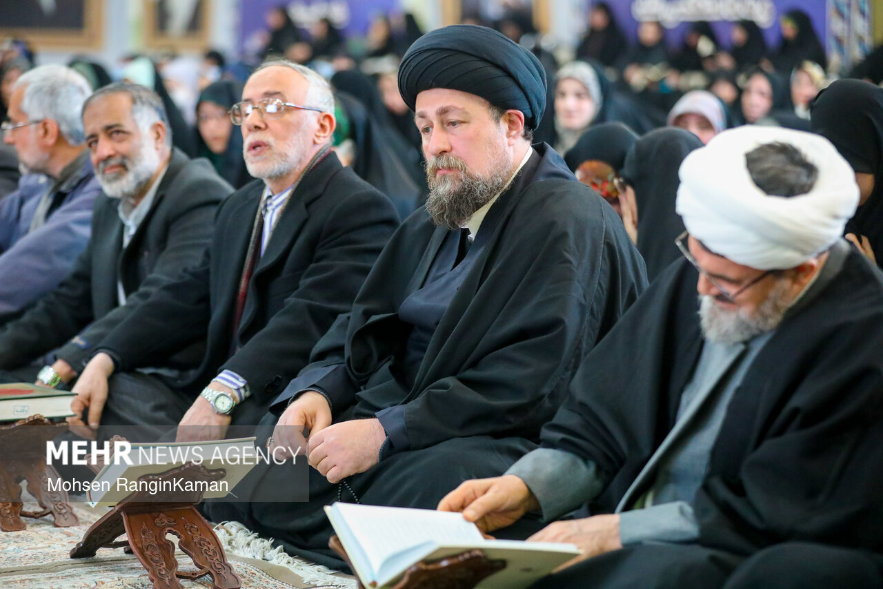 Head of Islamic Development Organization Hojjatoleslam Mohammad Qomi, Custodian of Mausoleum of Imam Khomeini (RA) Hojjatoleslam Seyyed Hassan Khomeini and Head of House of Quran Hojjatoleslam Ali Taghizadeh attended the ceremony.