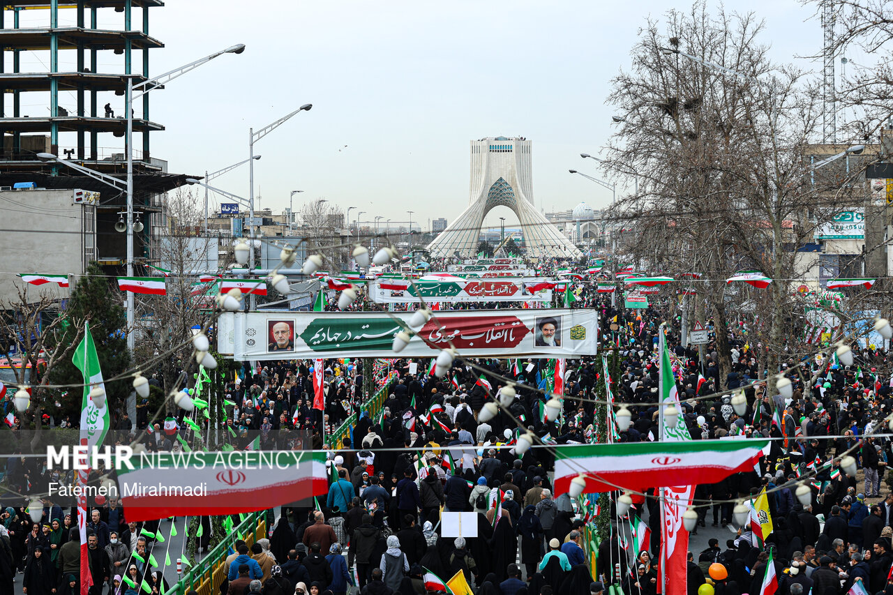 TEHRAN, Feb. 11 (MNA) – The people of the Iranian capital of Tehran commemorated the victory of the 1979 Islamic Revolution by attending huge rallies known as 22 Bahman in downtown the capital on Wednesday.
