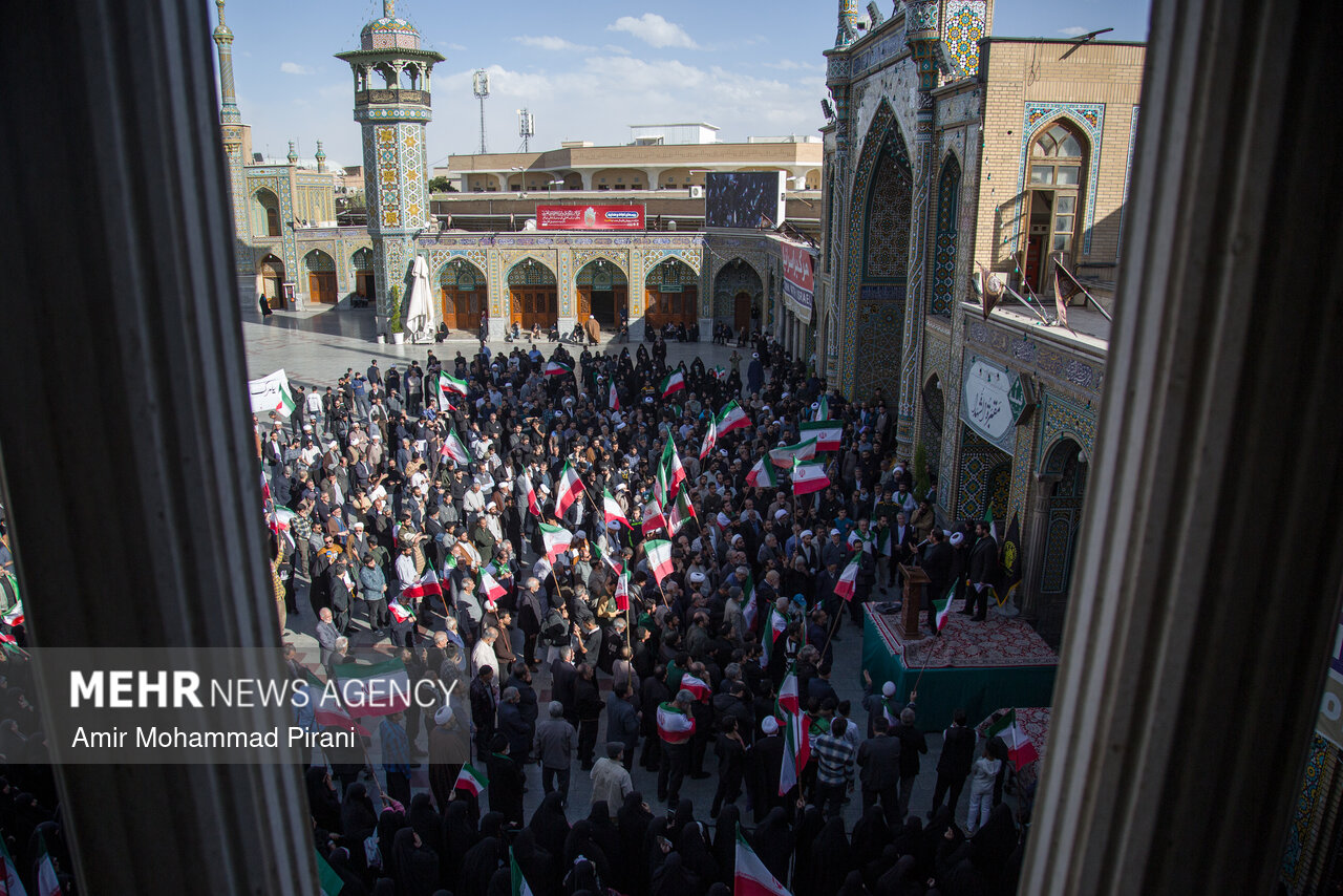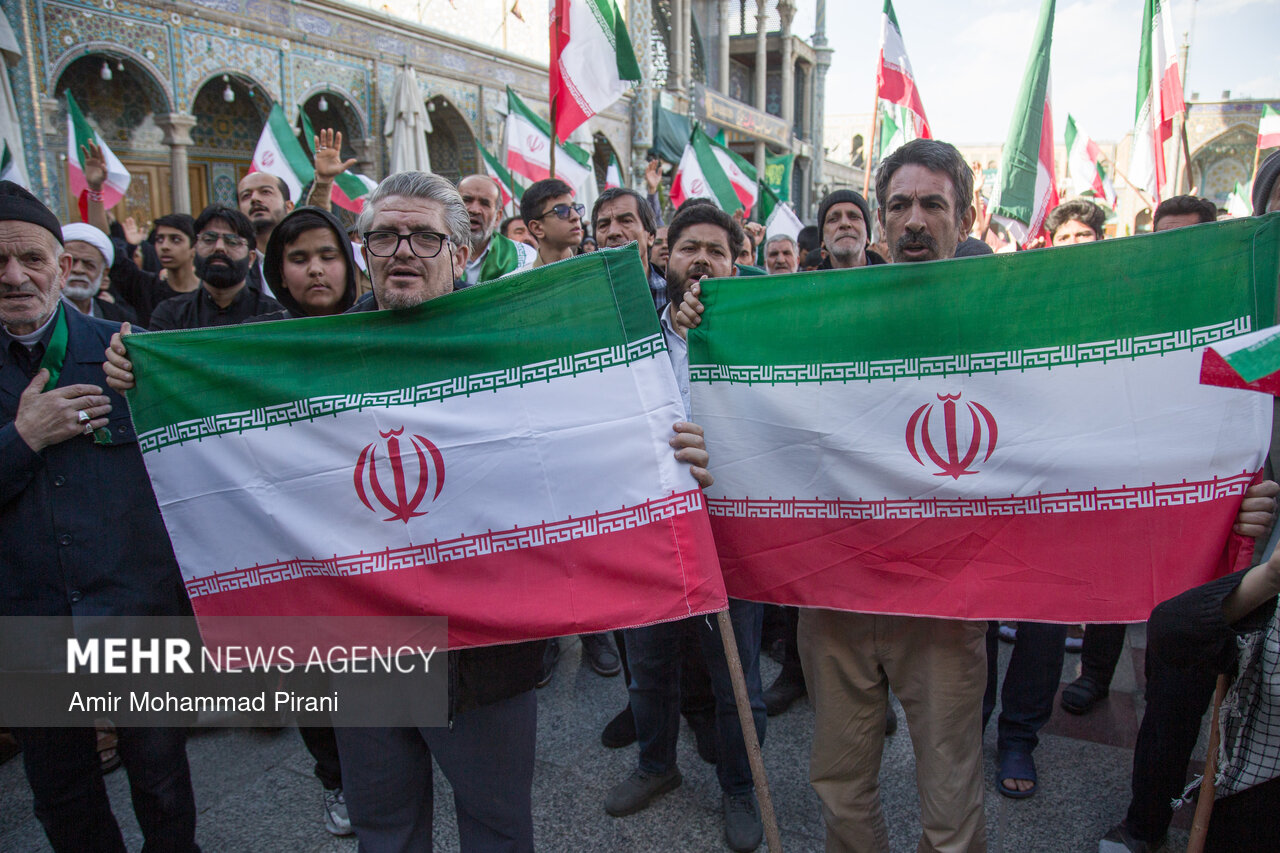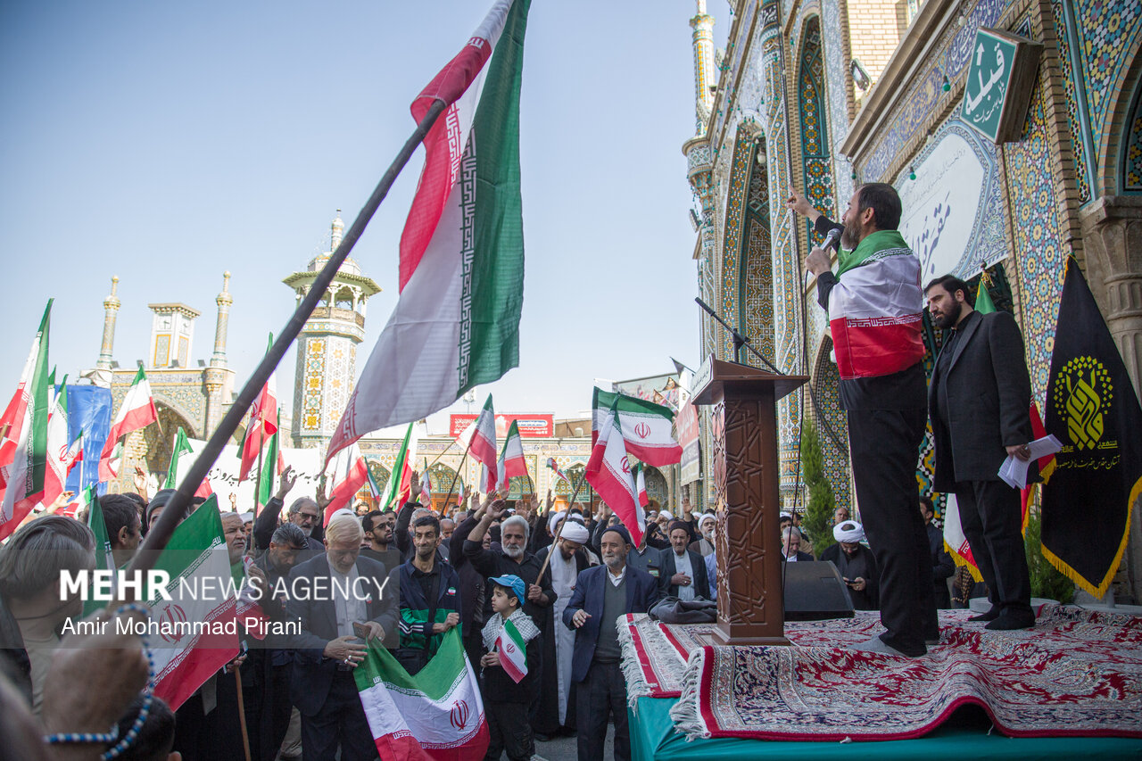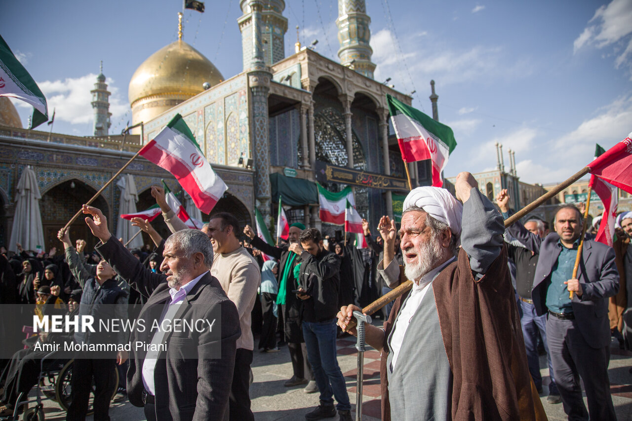 Photo Morteza Ahmadi Al Hashem 1 March 2026 - 17:36 Download photos By: Amir Mohammad Pirani People in Qom condemn US-Israeli aggression against Iran QOM, Mar. 01 (MNA) – People in Qom denounced the US-Israeli aggression against Iranian territory. Tags Qom condemnation Israeli aggression US-Israeli aggression on Iran Related News Russia condemns Israeli-US aggression against Iran Pakistan condemns aggression against Iran Tehran slams US envoy's extremist rhetoric Hamas condemns Trump's 'Board of Peace' meeting Iran condemns Israeli act in seizing Palestinian lands in WB