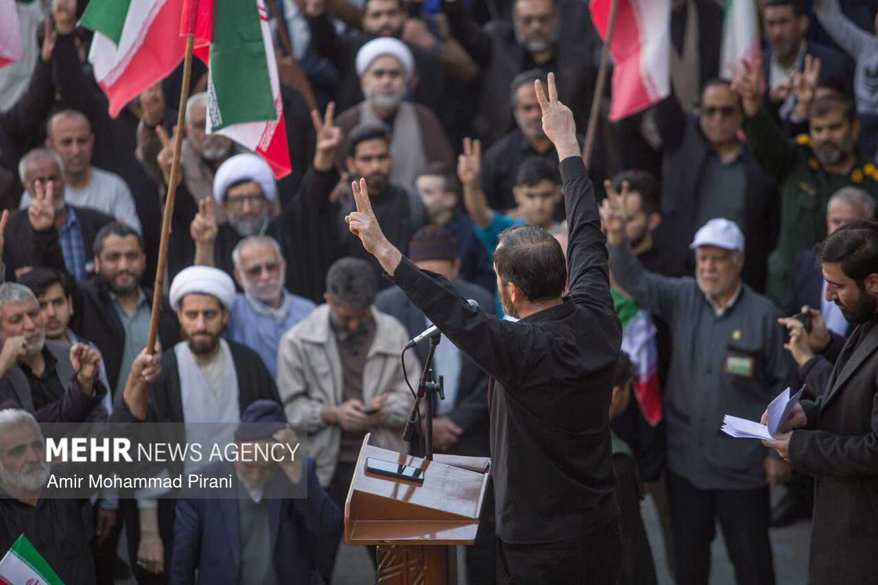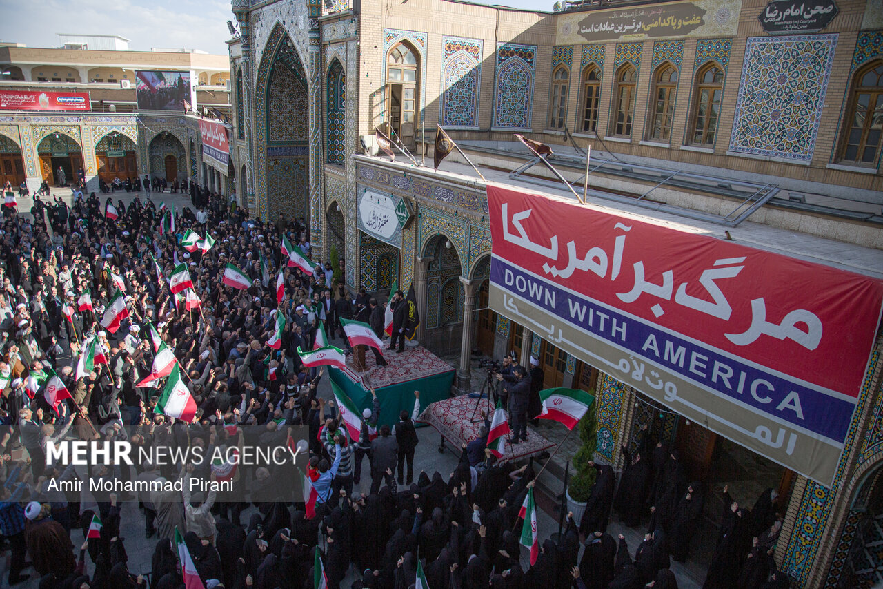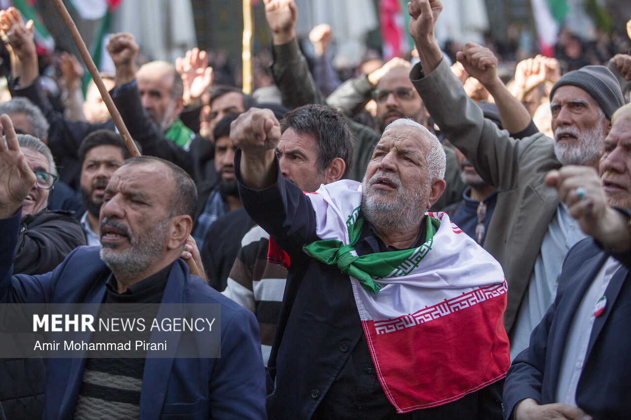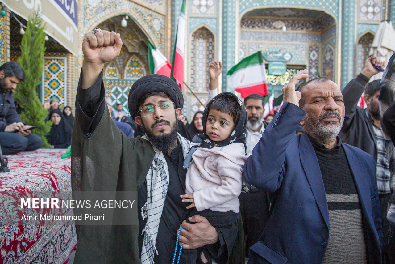 Photo Morteza Ahmadi Al Hashem 1 March 2026 - 17:36 Download photos By: Amir Mohammad Pirani People in Qom condemn US-Israeli aggression against Iran QOM, Mar. 01 (MNA) – People in Qom denounced the US-Israeli aggression against Iranian territory. Tags Qom condemnation Israeli aggression US-Israeli aggression on Iran Related News Russia condemns Israeli-US aggression against Iran Pakistan condemns aggression against Iran Tehran slams US envoy's extremist rhetoric Hamas condemns Trump's 'Board of Peace' meeting Iran condemns Israeli act in seizing Palestinian lands in WB