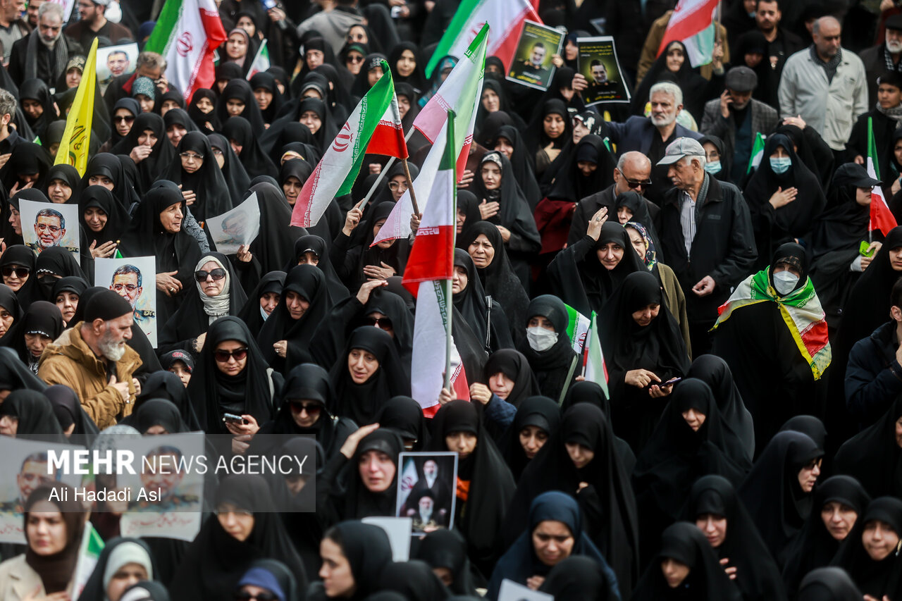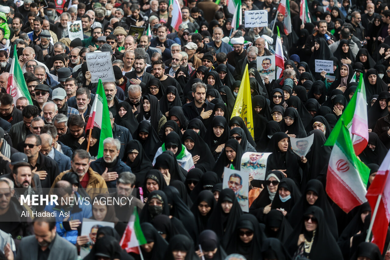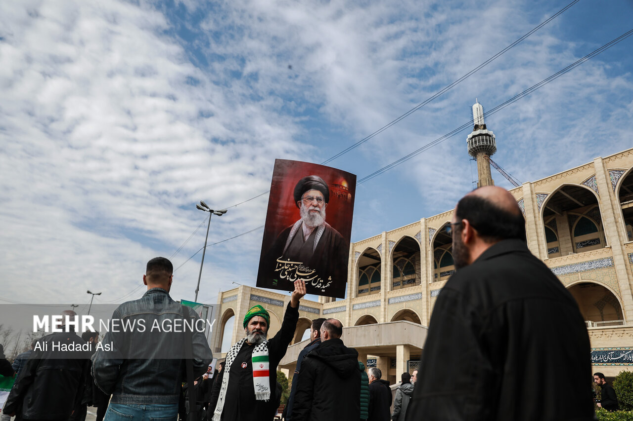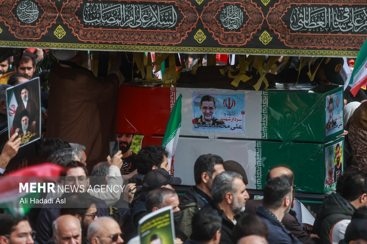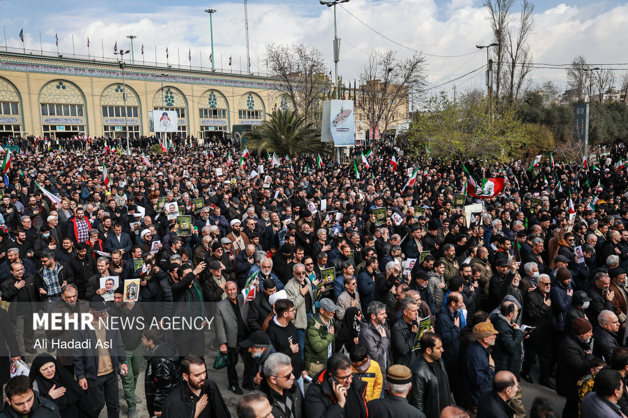 TEHRAN, Mar. 21 (MNA) – The people of Tehran performed Eid Fitr Prayers in Imam Khomeini Mossala on Saturday. The worshippers held a funeral for Martyr Ali Mohammad Naeini, IRGC spokesman after Eid Prayers at Mossalla.