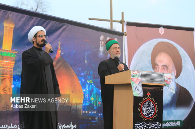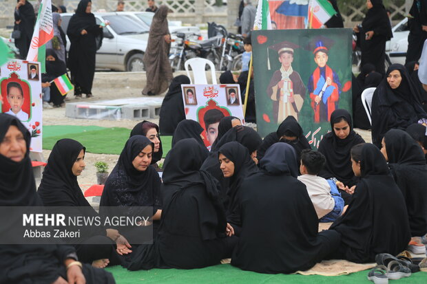 TEHRAN, Apr. 01 (MNA) – A ceremony commemorating the martyrs of Minab school was held on Tuesday, with a delegation from Grand Ayatollah Sistani’s office and the Imam Hussein (AS) holy shrine attending at the student martyrs’ cemetery.