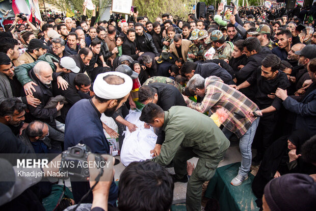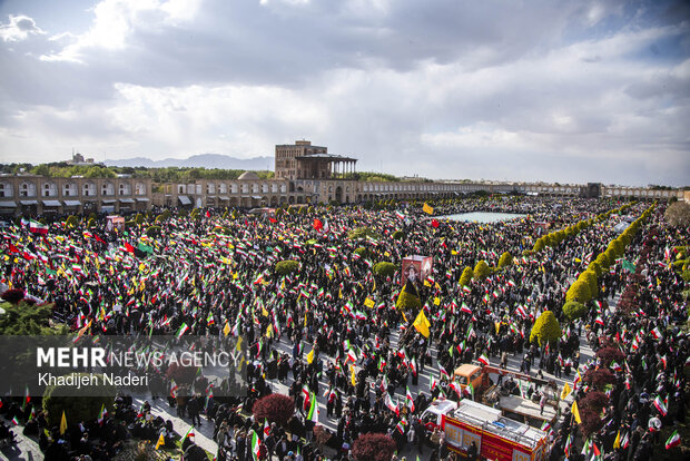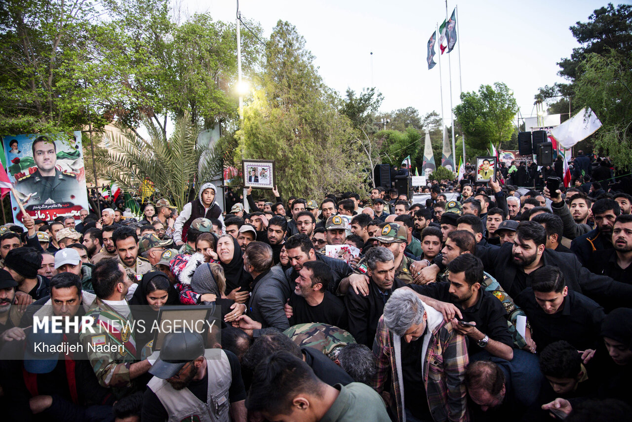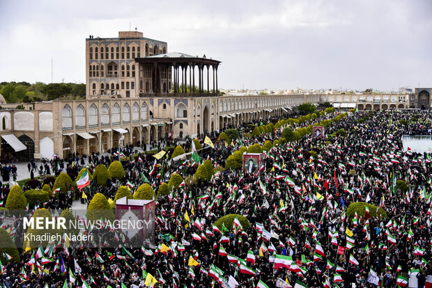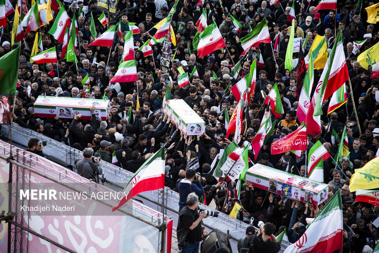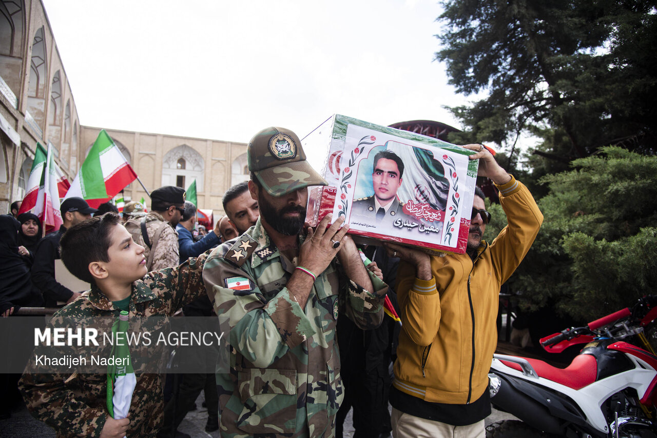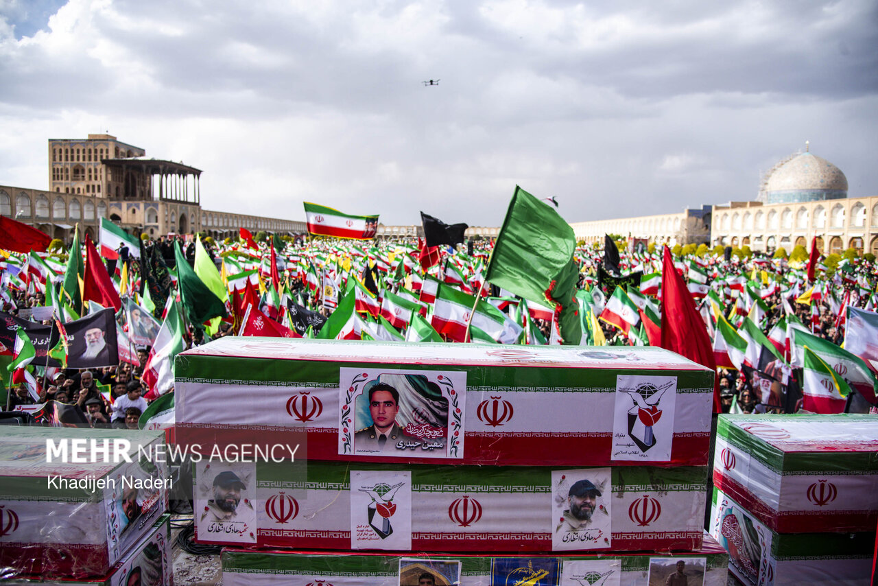 TEHRAN, Apr. 10 (MNA) – A mourning ceremony for the 40th day (Arbaeen) of the Leader’s martyrdom, along with the funeral procession of martyrs of the Ramadan War, was held in Isfahan on Thursday.