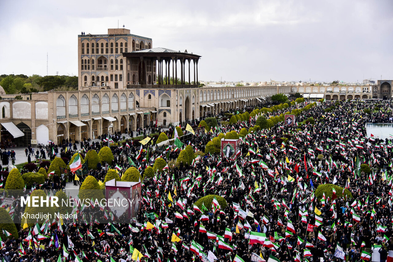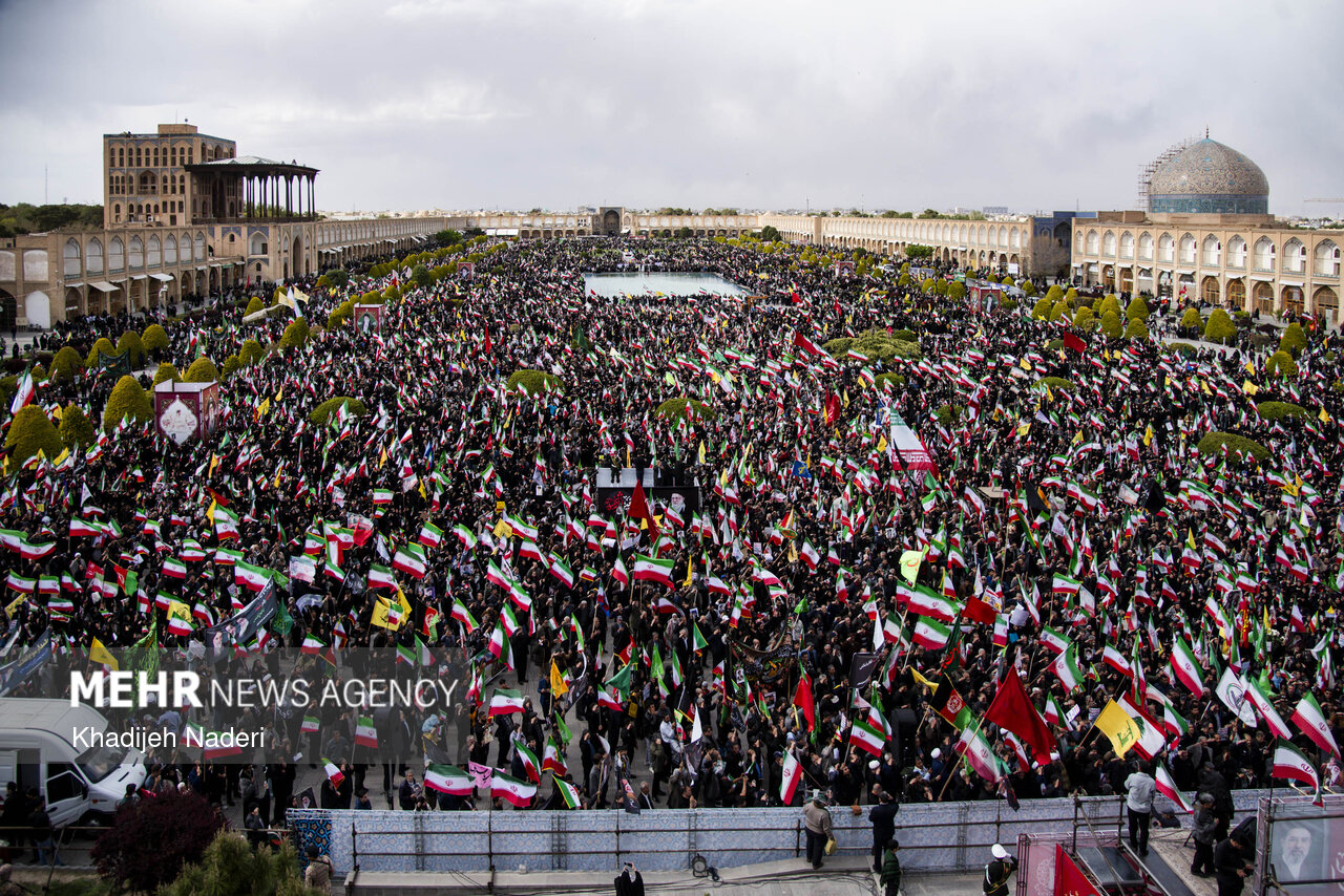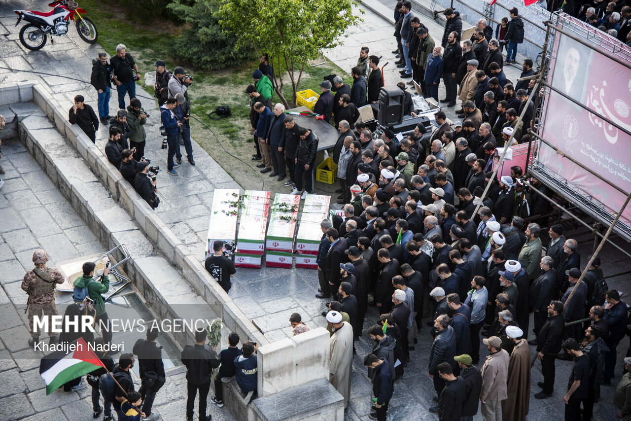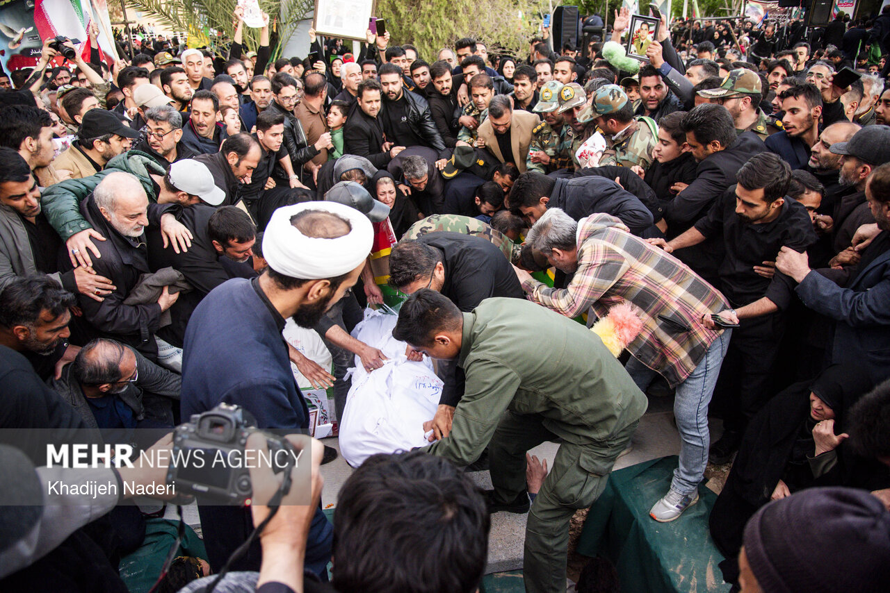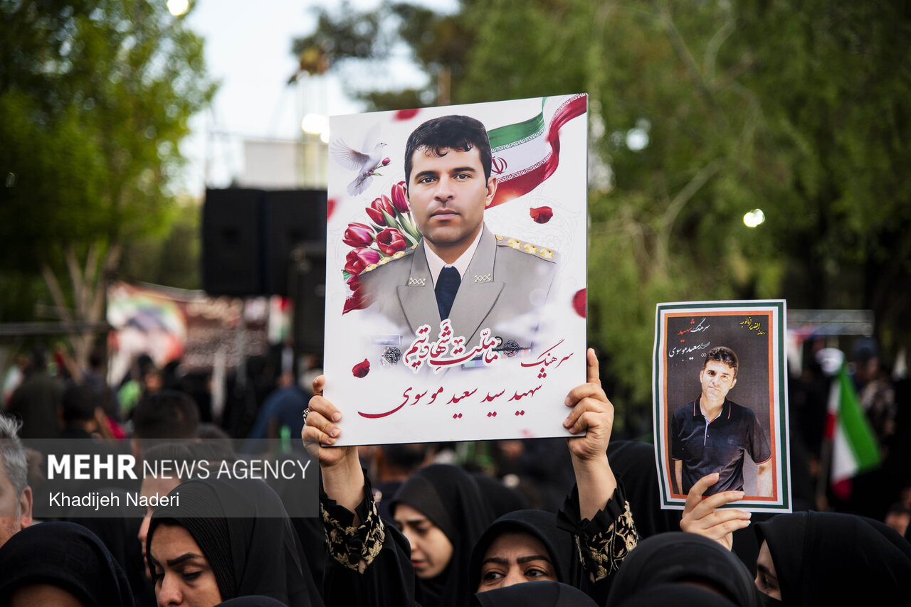 TEHRAN, Apr. 10 (MNA) – A mourning ceremony for the 40th day (Arbaeen) of the Leader’s martyrdom, along with the funeral procession of martyrs of the Ramadan War, was held in Isfahan on Thursday.