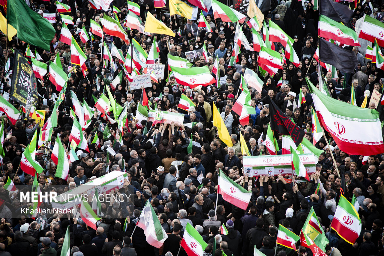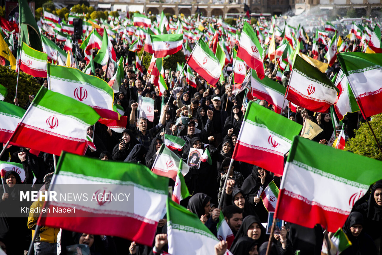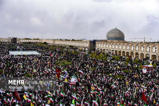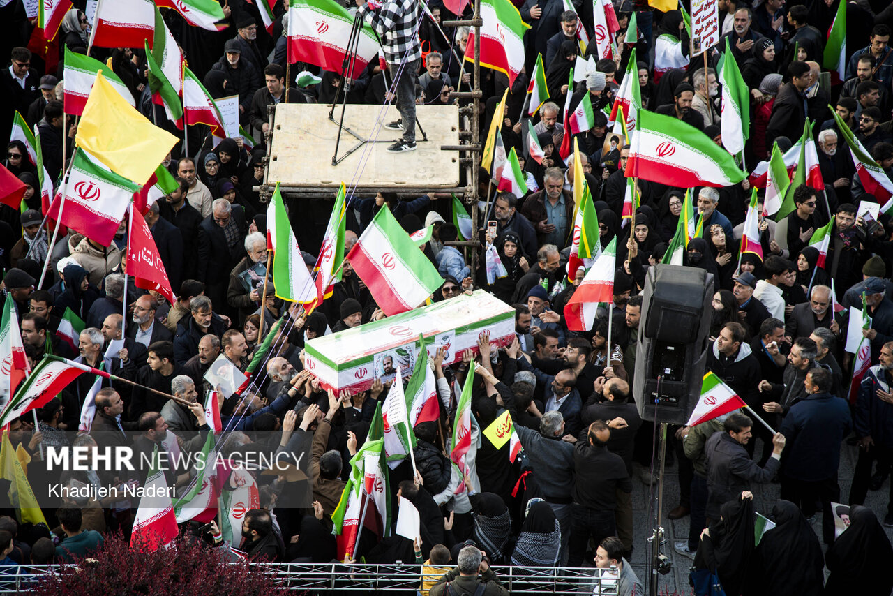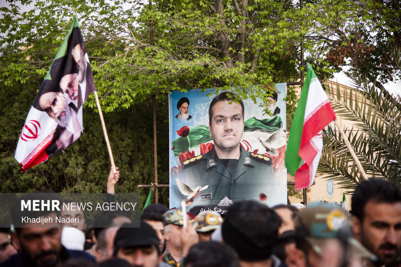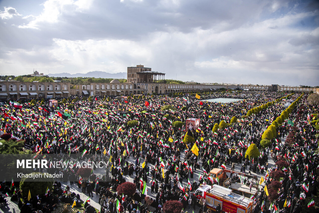 TEHRAN, Apr. 10 (MNA) – A mourning ceremony for the 40th day (Arbaeen) of the Leader’s martyrdom, along with the funeral procession of martyrs of the Ramadan War, was held in Isfahan on Thursday.