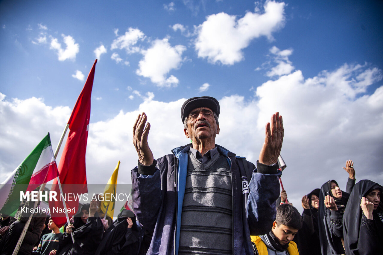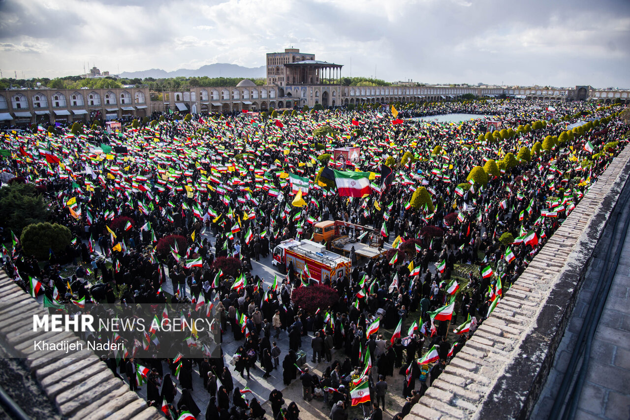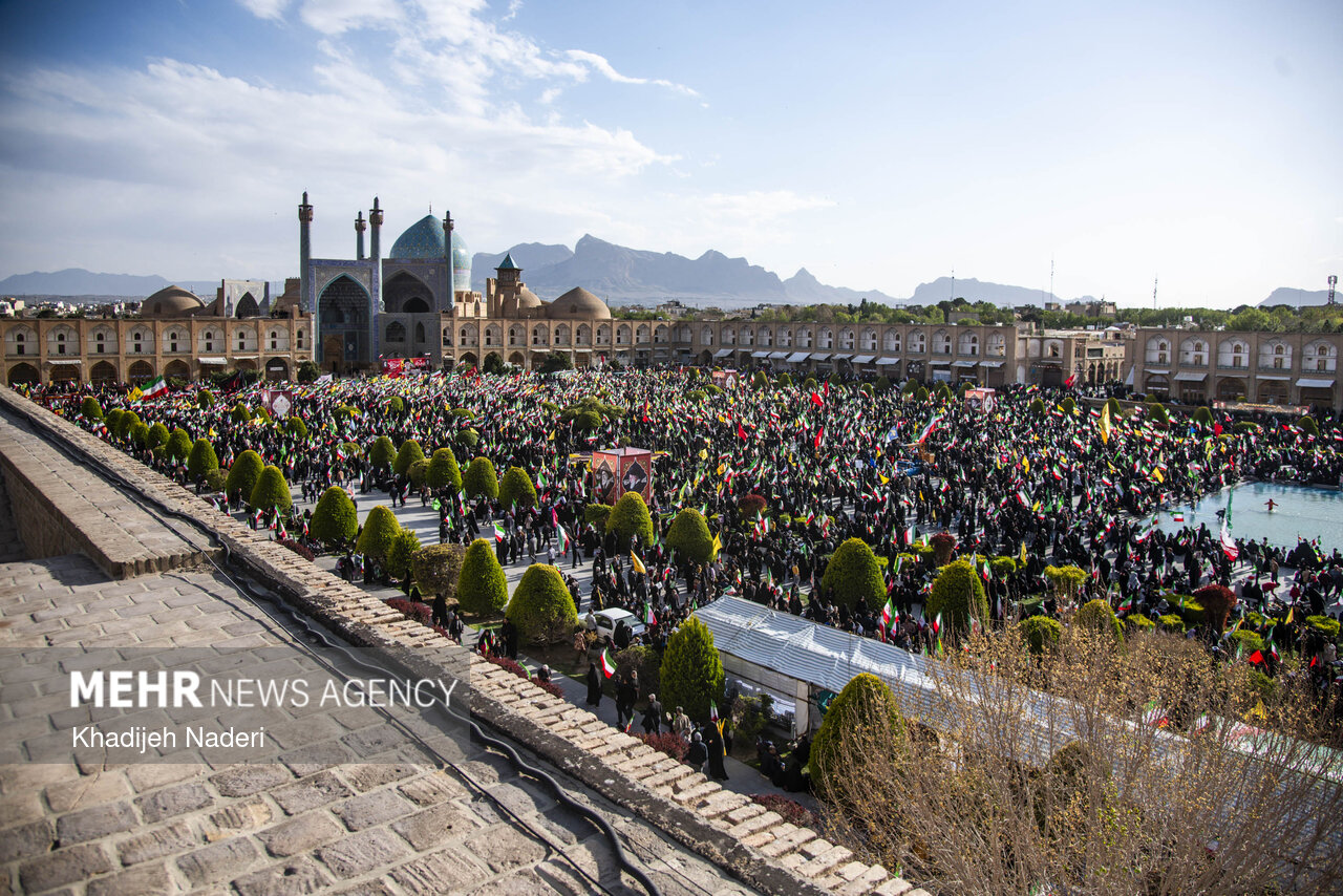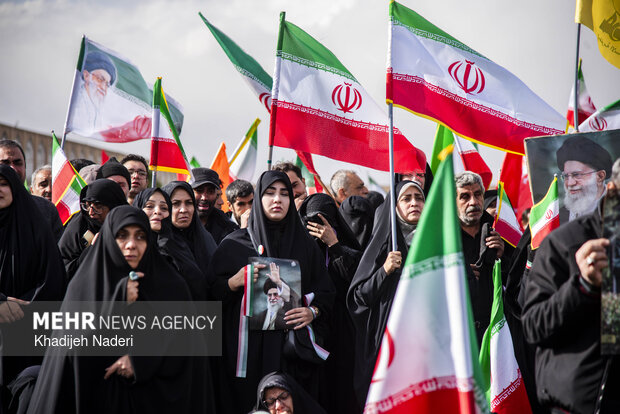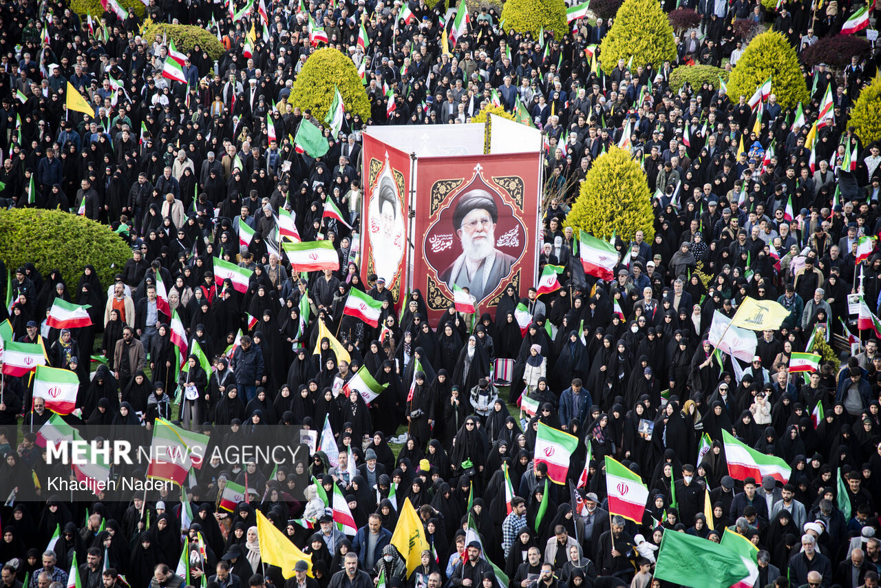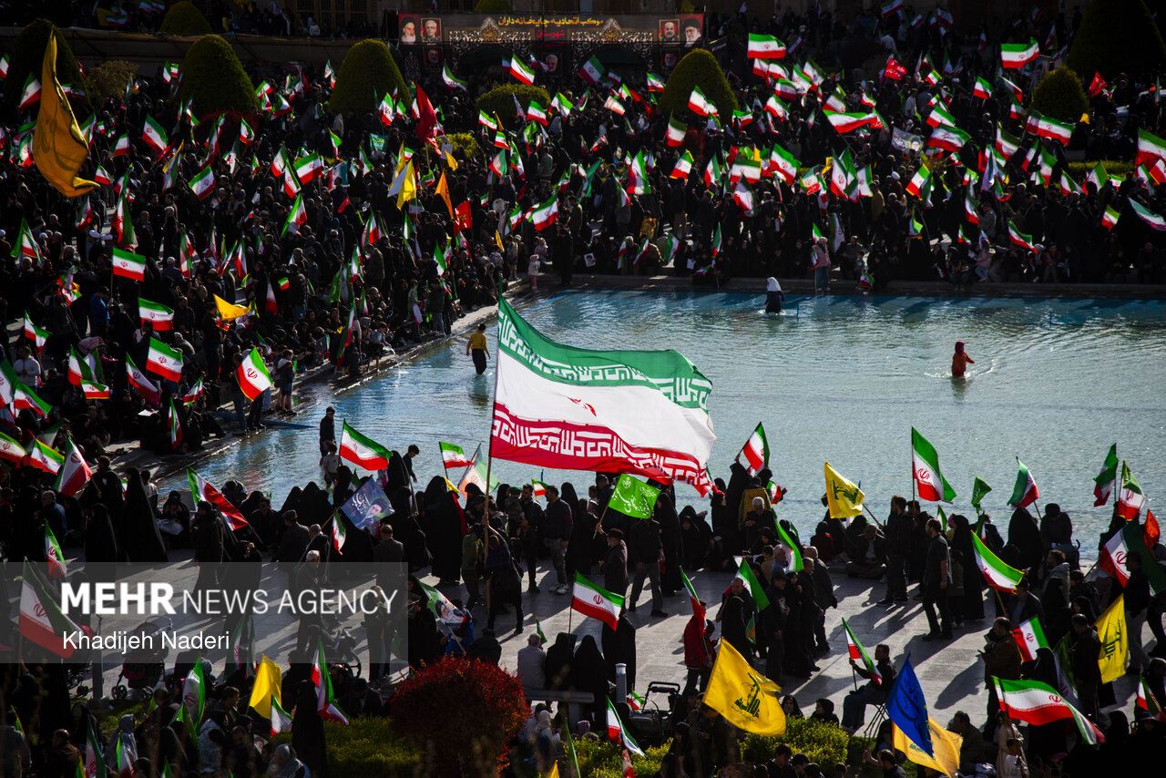 TEHRAN, Apr. 10 (MNA) – A mourning ceremony for the 40th day (Arbaeen) of the Leader’s martyrdom, along with the funeral procession of martyrs of the Ramadan War, was held in Isfahan on Thursday.