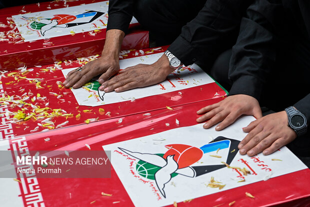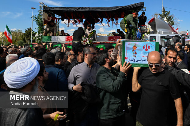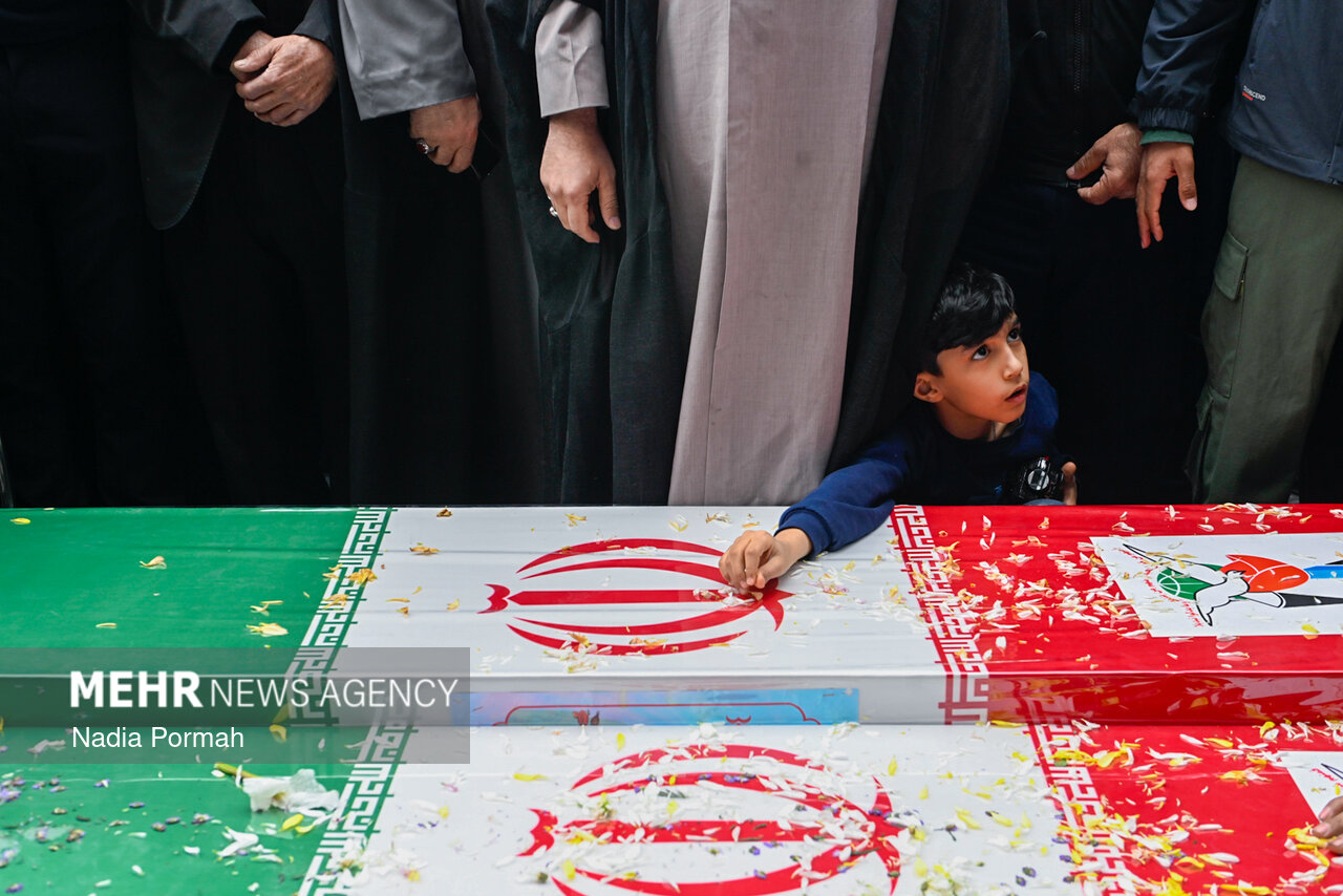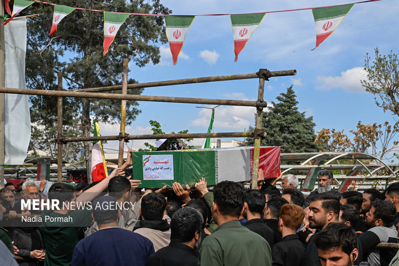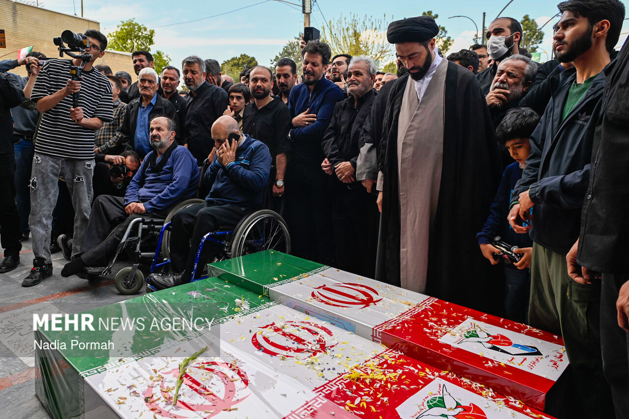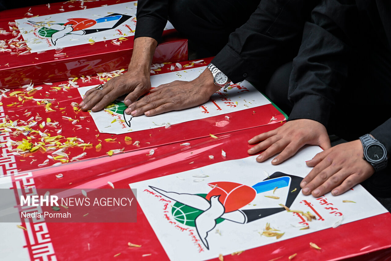 TEHRAN, Apr. 11 (MNA) – The funeral ceremony for the martyrs of the Ramadan War, who were killed as a result of the American-Zionist aggression in Alborz province, was held in Karaj.