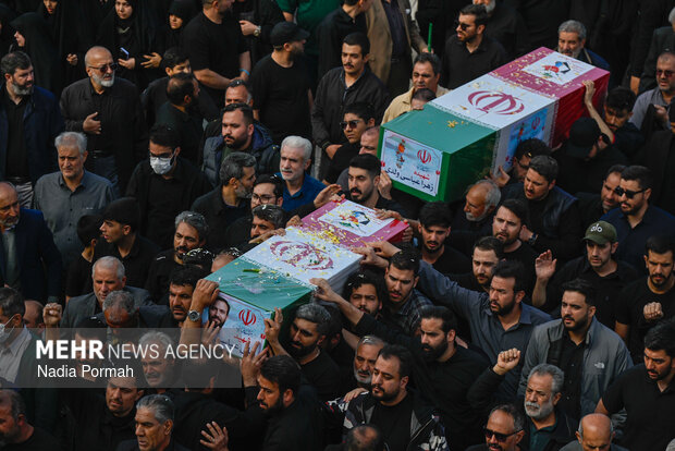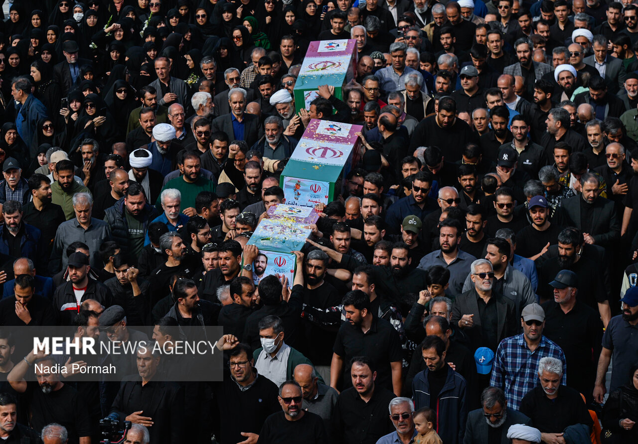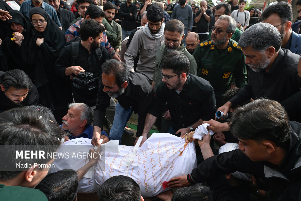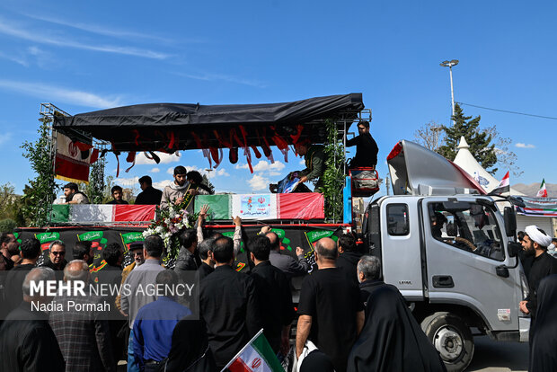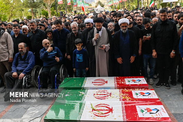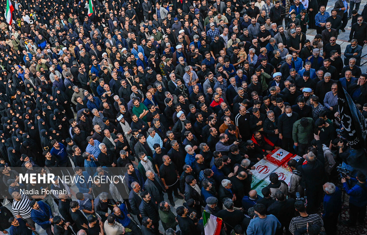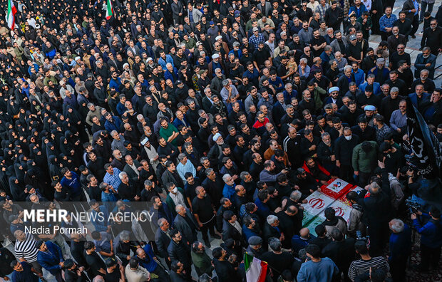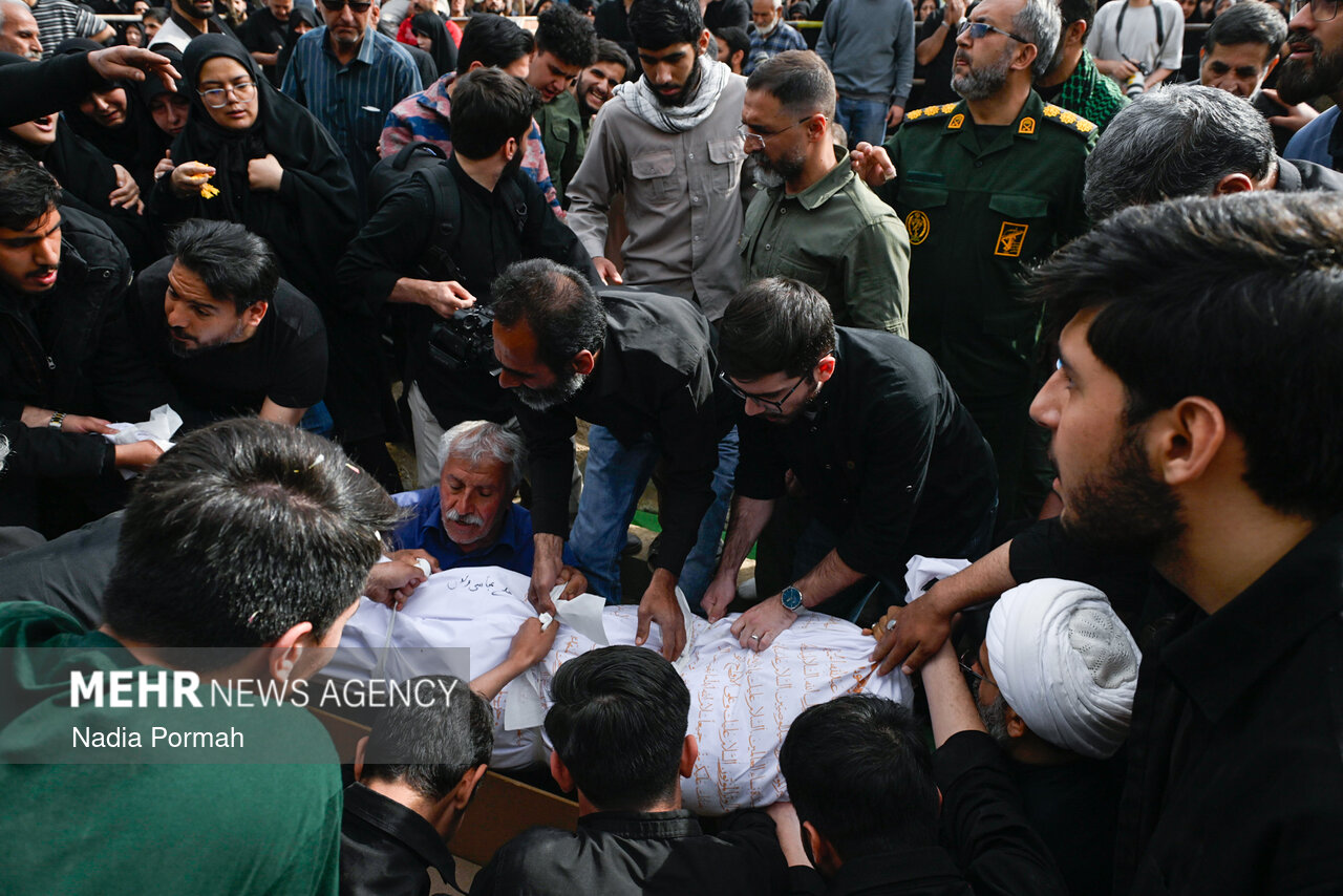 TEHRAN, Apr. 11 (MNA) – The funeral ceremony for the martyrs of the Ramadan War, who were killed as a result of the American-Zionist aggression in Alborz province, was held in Karaj.