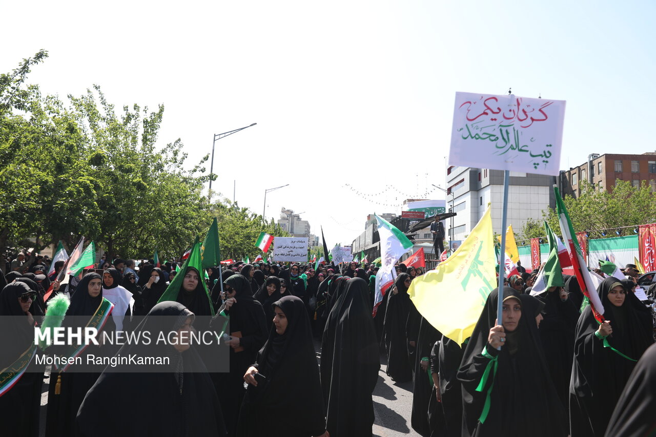 TEHRAN, Apr. 17 (MNA) – The grand gathering of “Girls Devoted to Iran”, was held from Imam Hussein (AS) Square to Vali-e Asr Cross on Enghelab Avenue in Tehran concurrent with the birth anniversary of Hazrat Masoumeh (SA).