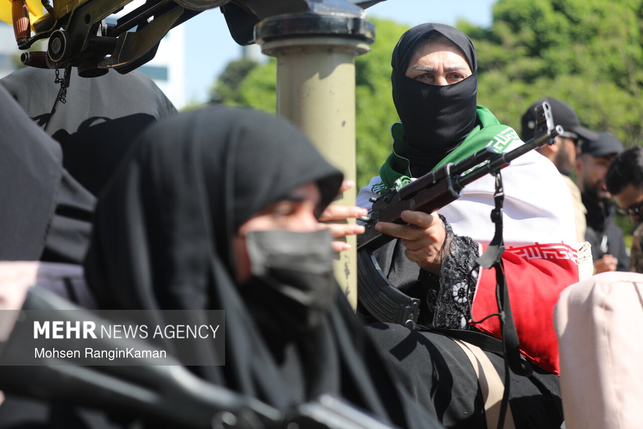 The Gathering of "Girls Devoted to Iran" refers to a gathering, special of girls, who declared that they are ready to defend their country with their utmost power and also throw their weight behind the new Leader of the Islamic Revolution.