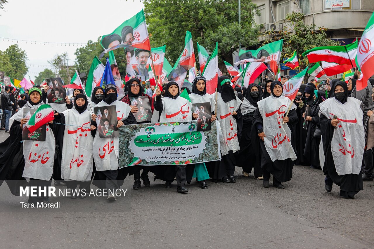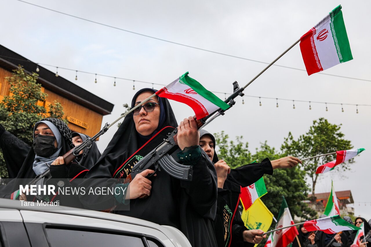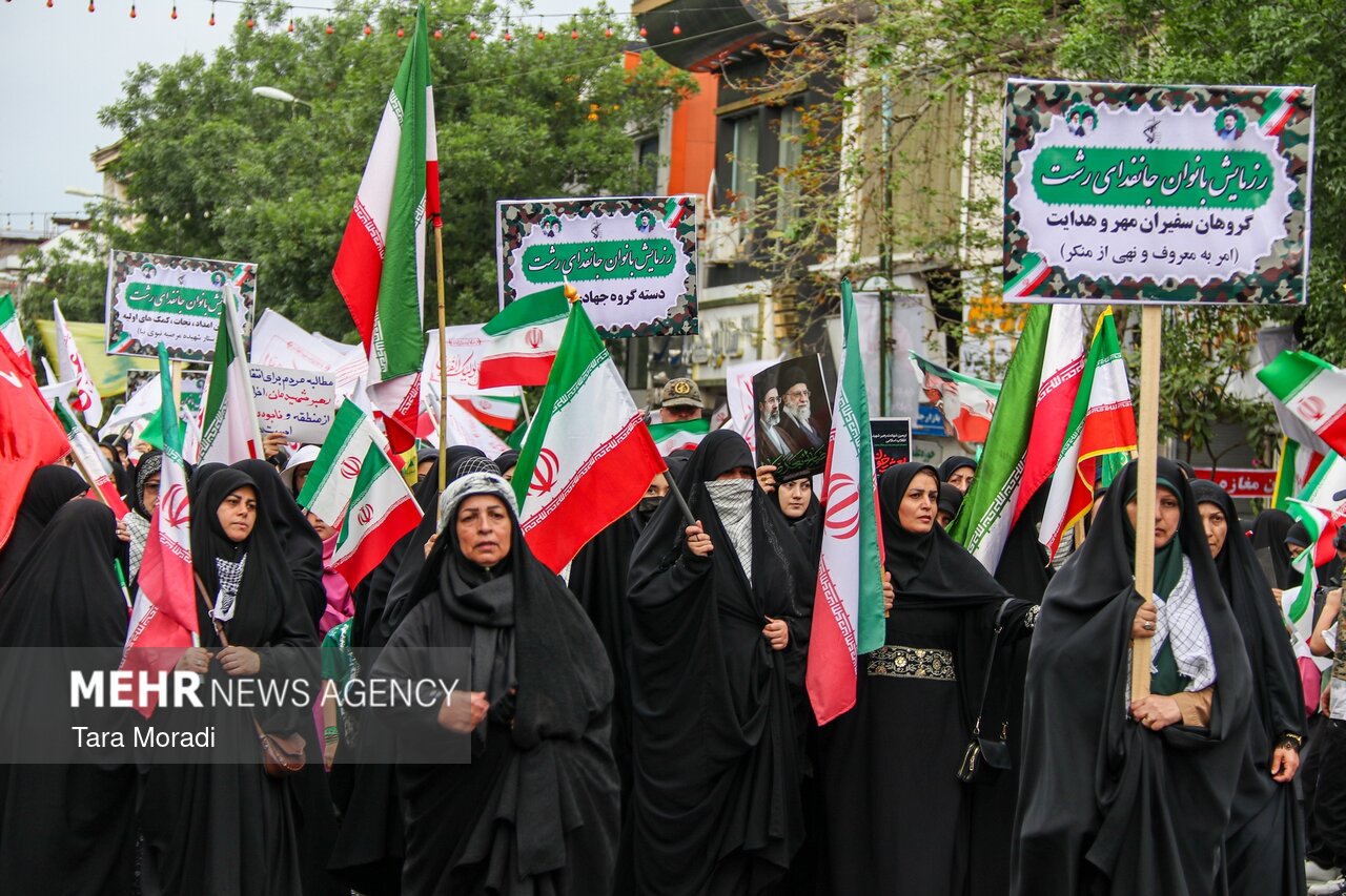 RASHT, Apr. 25 (MNA) – On the occasion of the Decade of Dignity, a grand gathering of girls and women “Devoted to Iran” was held in Rasht, Gilan province.